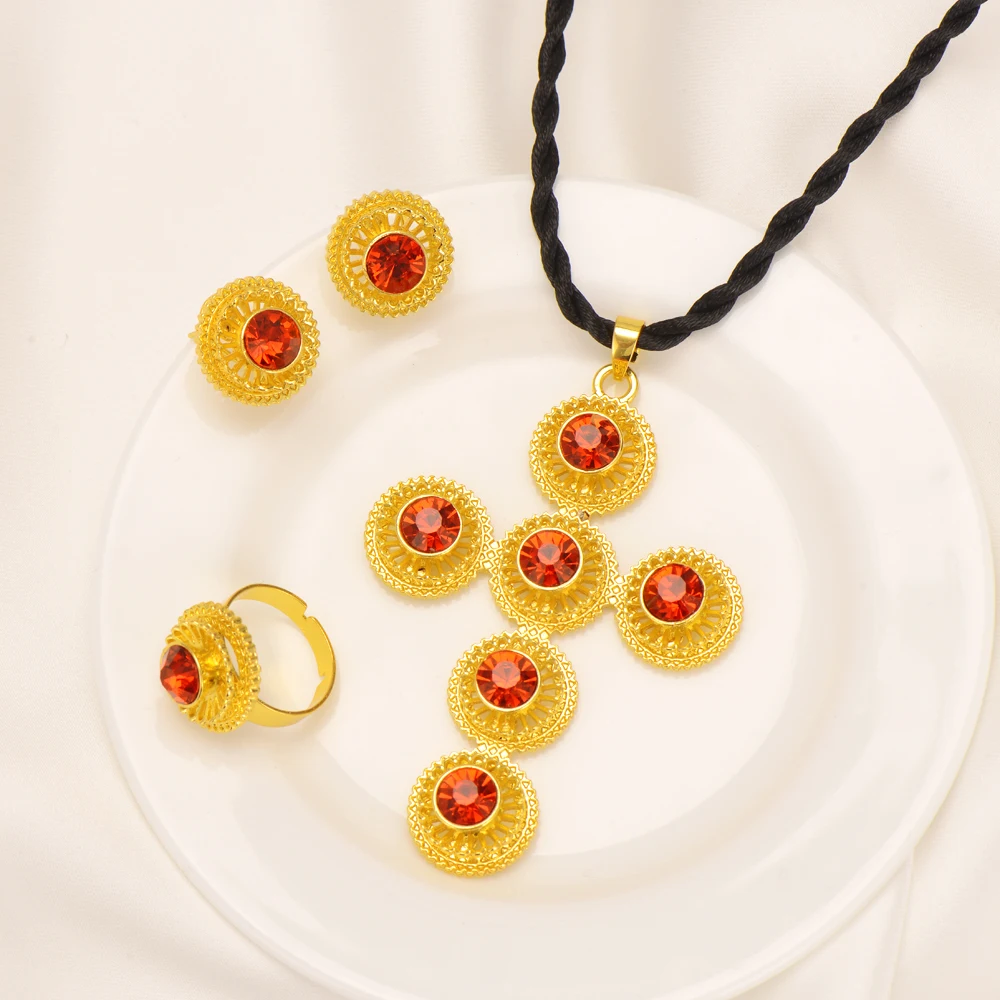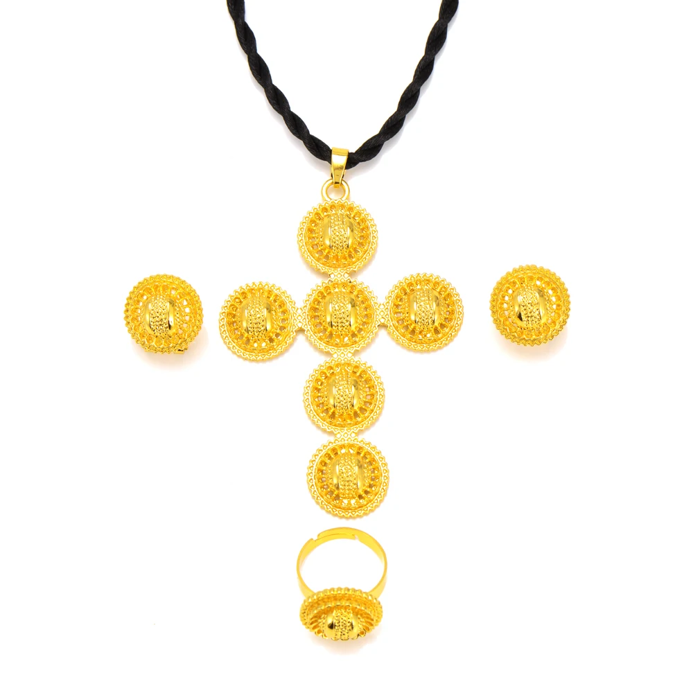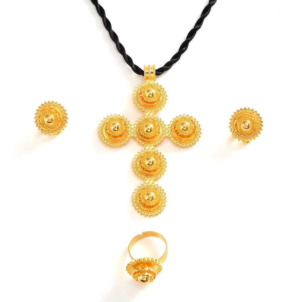 Женский комплект ювелирных украшений с крестом из эфиопского традиционного жемчуга, ожерелье и серьги, свадебные вечерние комплекты в стиле «золото Эритрея»