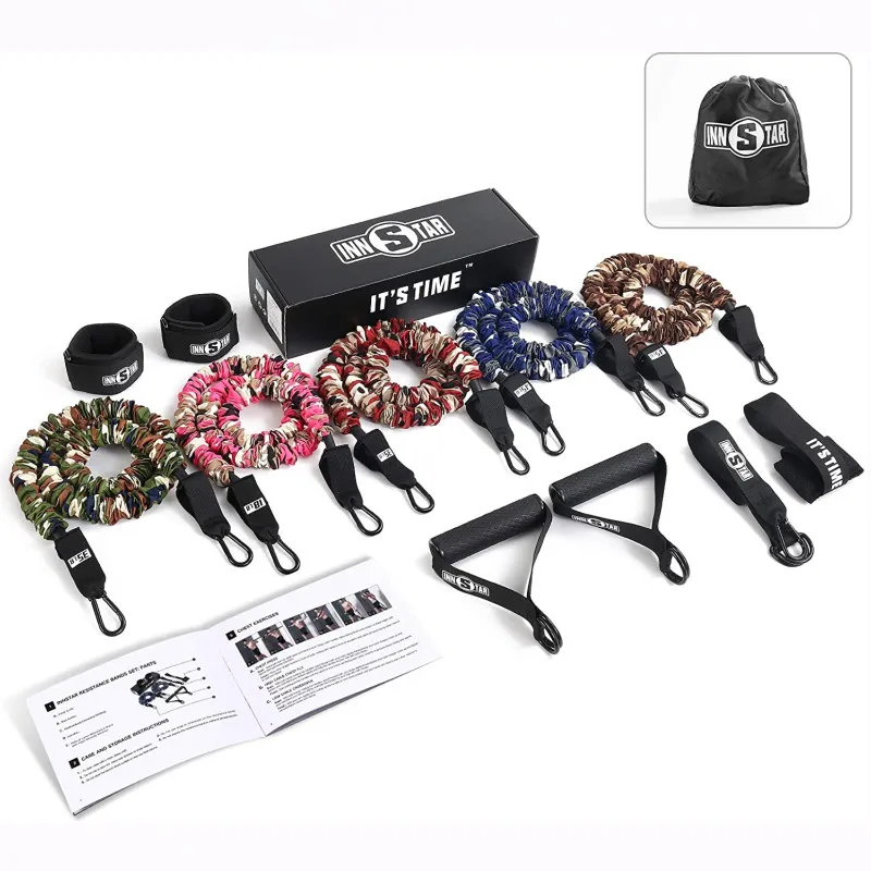 INNSTAR Набор резинок для упражнений, эластичная лента для дома, тренажеры, тренажеры для занятий фитнесом, Тяговая веревка с ручкой из пены и дверным якорем
