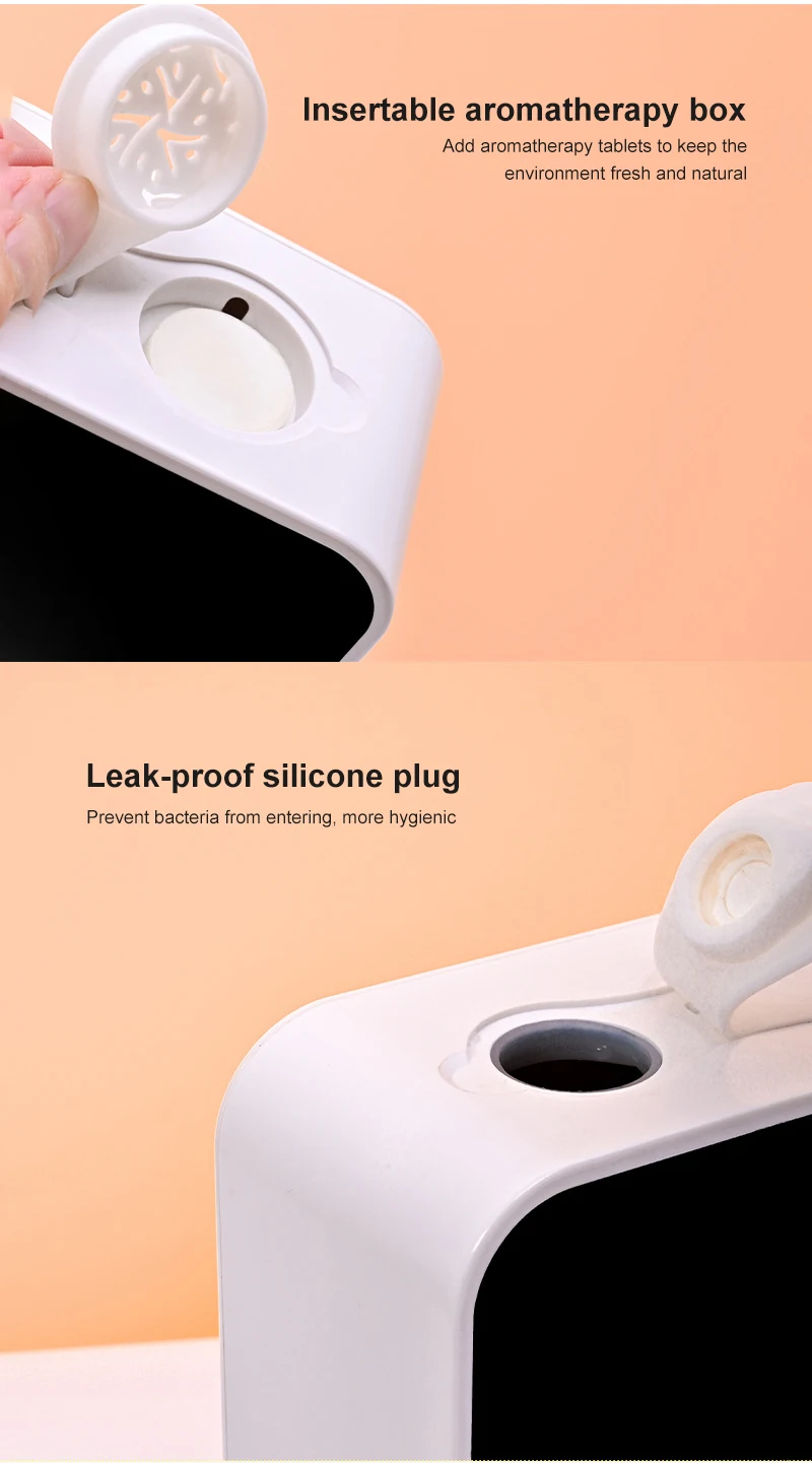 6. Большая емкость для хранения 400 мл Номинальная емкость, не нужно часто менять дезинфицирующее средство для рук.