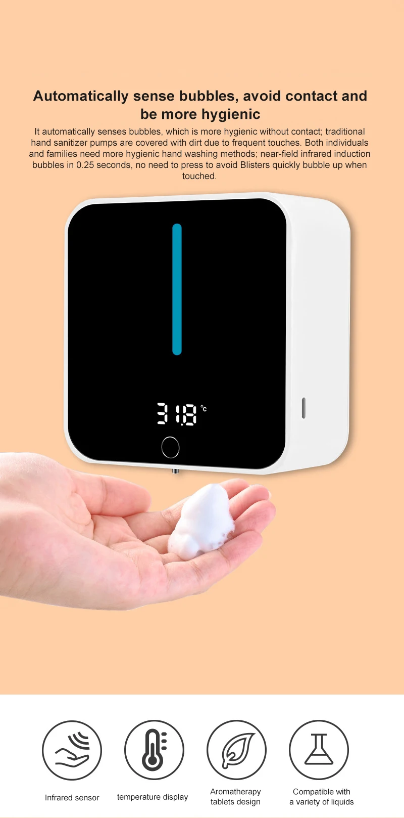 2. Инфракрасный индукционный пузырь, не нужно касаться, достигать области пузыря, может быстро пузыриться.