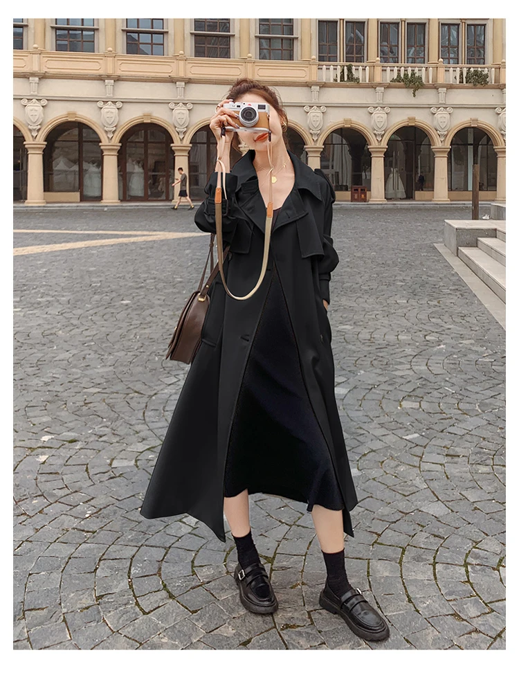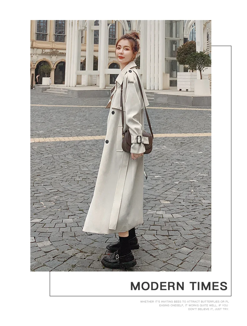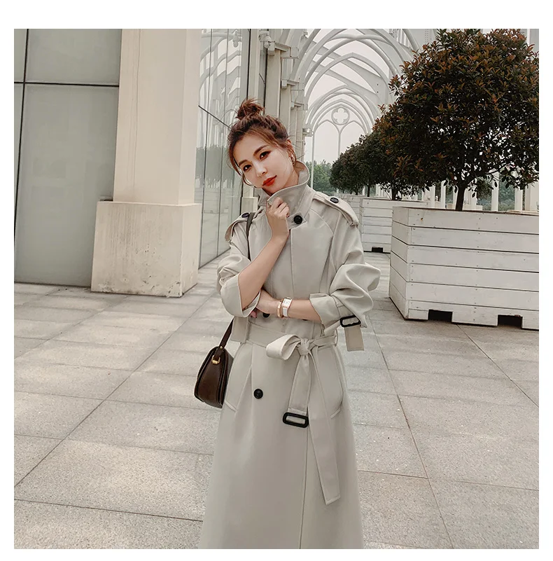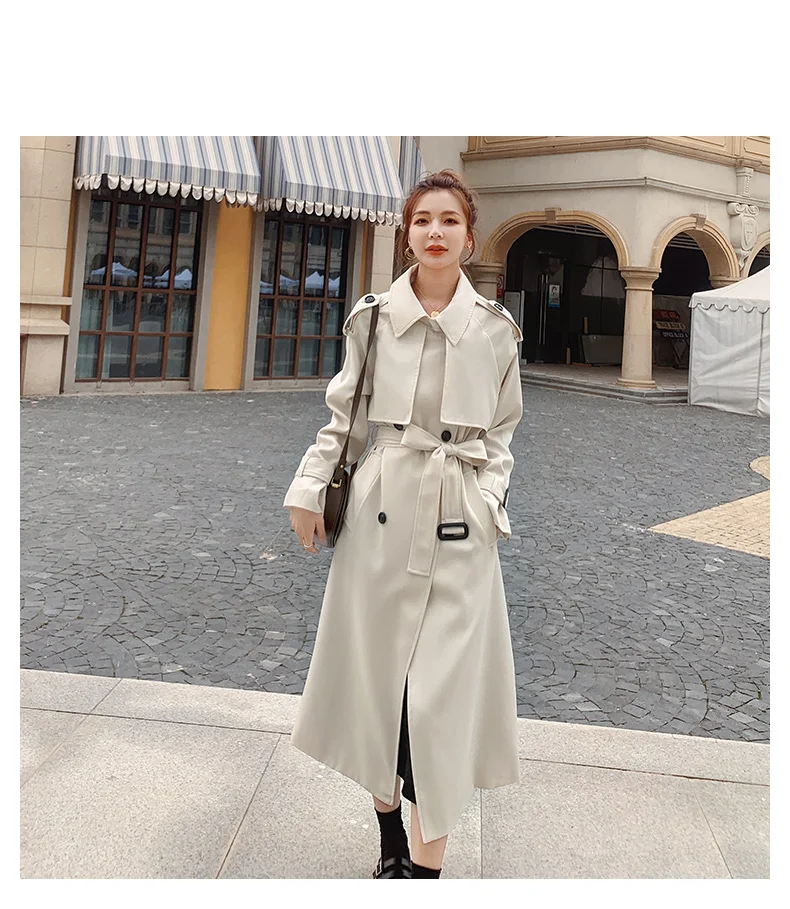 Отзывы о Тренчкот женский длинный двубортный с поясом модная бежевая куртка-ветровка