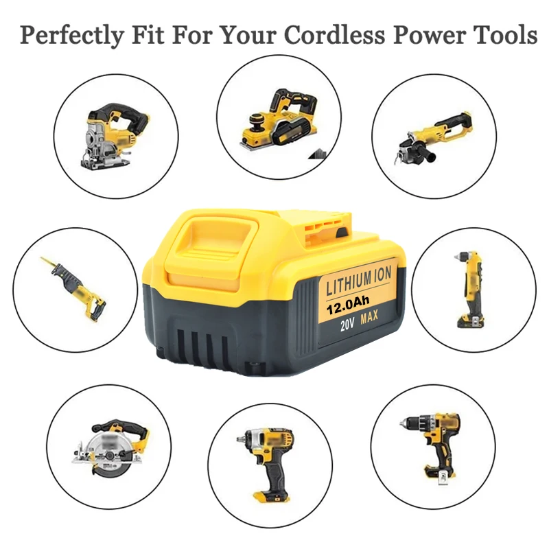 20 в 12Ач литиевая батарея для DeWalt электроинструменты DCB184 DCB200 Аккумуляторный Электрический набор инструментов 20 вольт 20 в 12000 мАч батарея