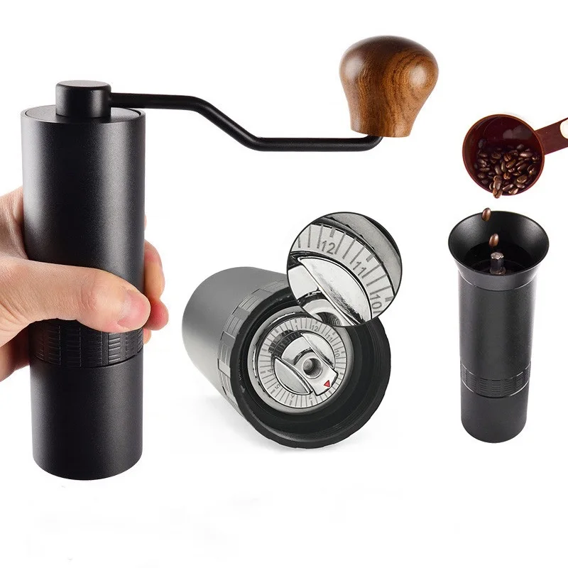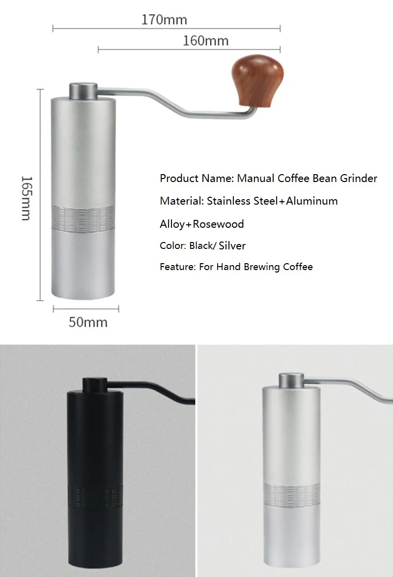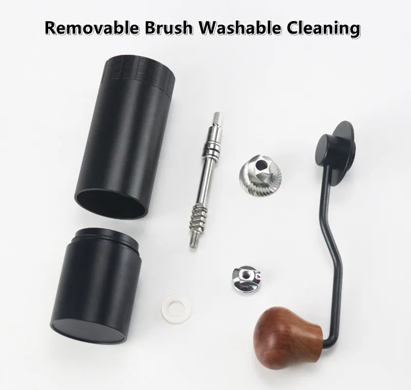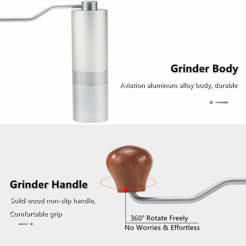 ➤ This hand coffee grinder has a high-quality aluminum exterior and a stainless steel interior, which means it's built with durability. The adjustment dial allows you to get extreme precision with coffee grind coarseness of full customization on grind size.