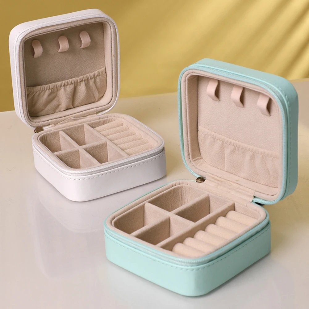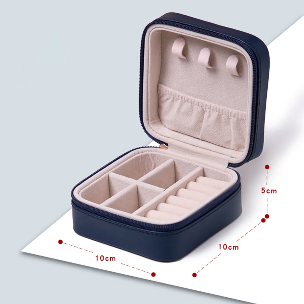 Портативный мини-чехол на молнии для ювелирных изделий, для путешествий, наружное кольцо, подвеска, держатель, ожерелье, коробка для хранения сережек Характеристика: Независимая коробка для ювелирных изделий, за исключением ювелирных изделий в коробке. Легкий и удобный, с несколькими отделениями, вы можете положить большие серьги, броши и другие предметы первой необходимости. Кольцевая паза может держать 6 колец или несколько пар сережек. Спецификация: Название продукта: простая портативная коробка для ювелирных изделий с кольцом, мини коробка для ювелирных изделий, квадратная коробка для путешествий, Подарочная коробка для ювелирных изделий, коробка для хранения Материал: искусственная кожа + бархат с бусинами Размер: 100*100*50 мм/3,94*3,94*1,97" Цвет: белый, розовый, небесно-голубой, темно-синий Примечание: В связи с различиями мониторов и эффектами освещения реальный цвет товара может немного отличаться от цвета на фотографиях. Спасибо! Возможны отклонения в 1-2 см вследствие измерений вручную.