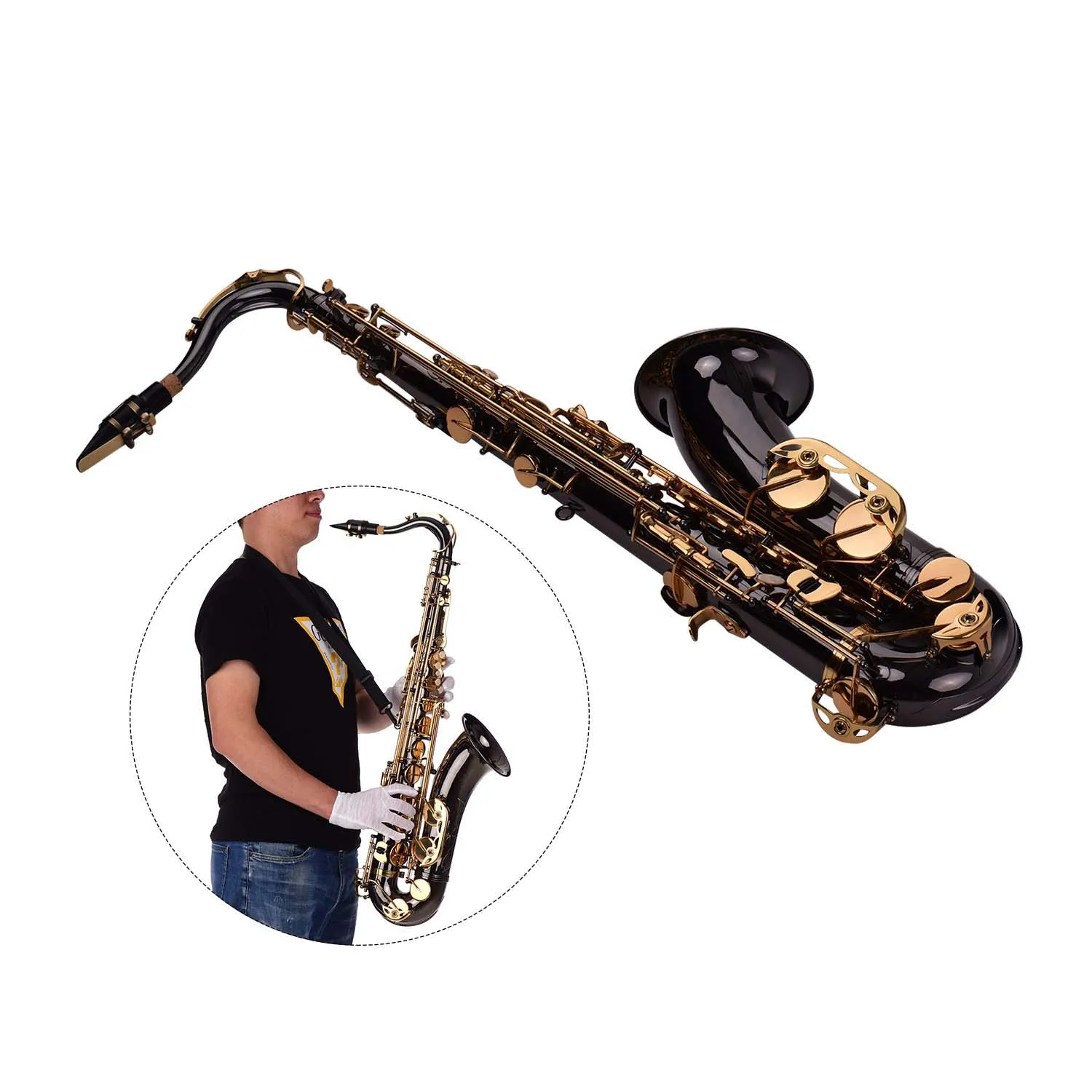 Отзывы о Bb тенор саксофон латунный корпус черный никелированный золотой ключ древесный