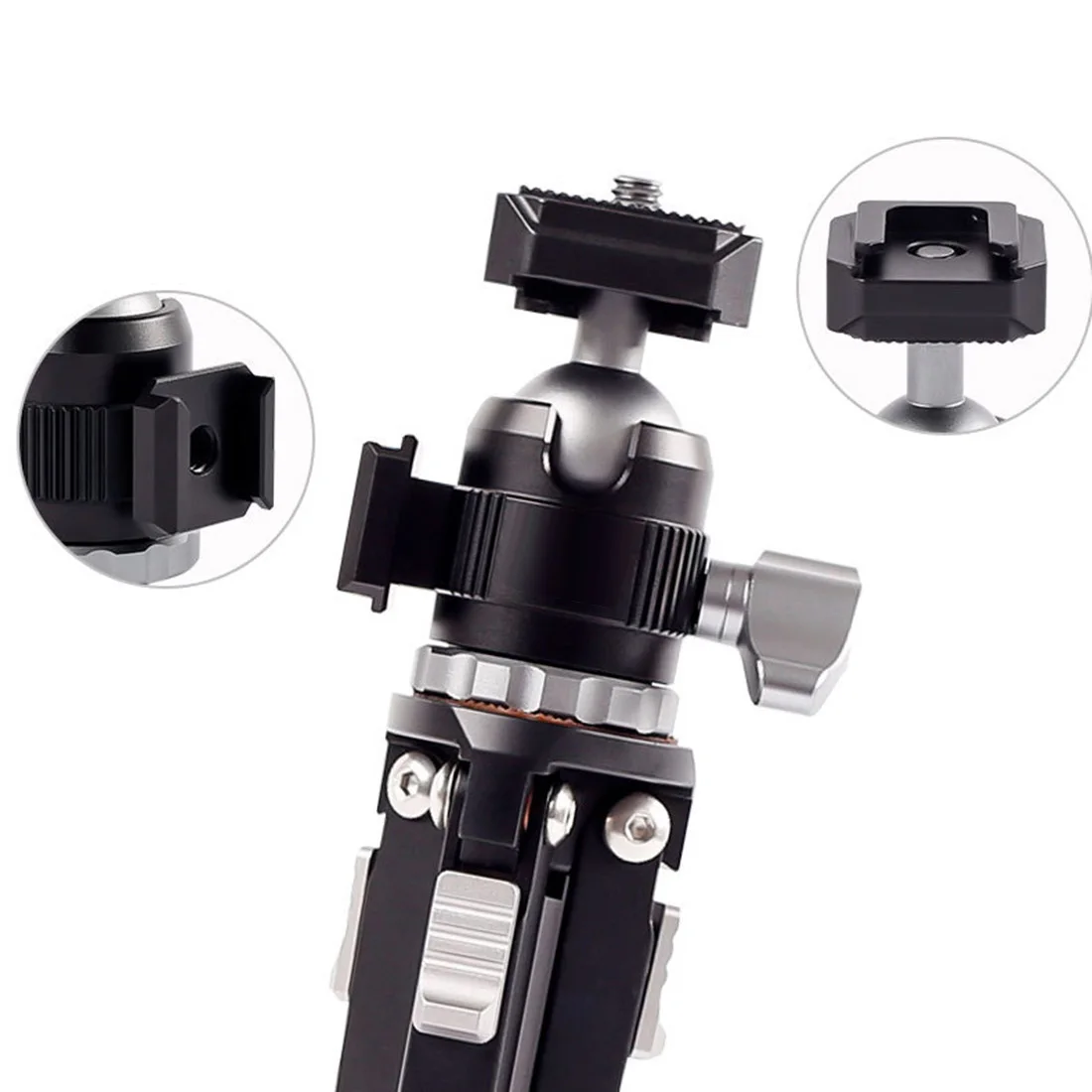 Стандартное отверстие с внутренней резьбой 1/4 дюйма в нижней части позволяет устанавливать на большинство цифровых DSLR-камер, видеокамер или экшн-камер, таких как Gopro, штативы, легкие стойки, Моноподы и другие изделия, содержащие 1/4 винтов для увеличения расширяемости оборудования.