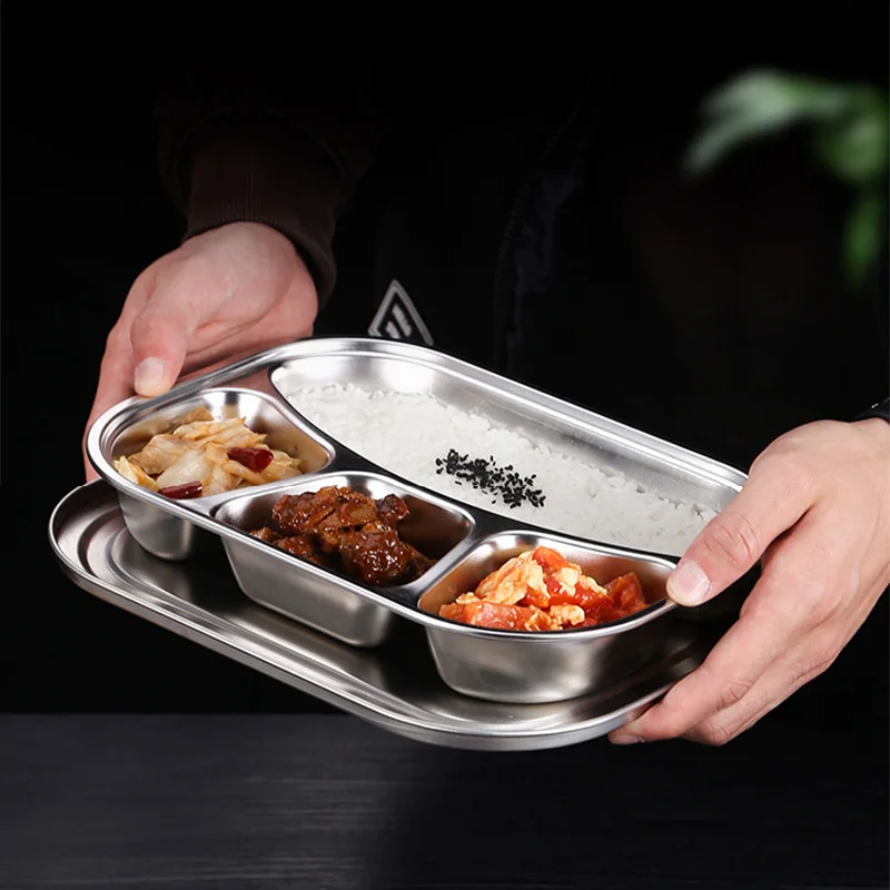 Отзывы о Обеденная тарелка из нержавеющей стали 304 поднос для еды с крышкой учеников и
