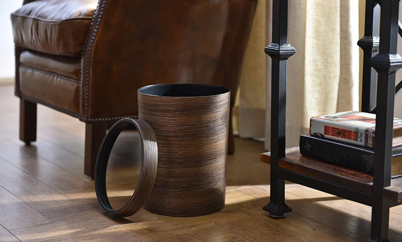 Кухонная мусорная корзина Ретро мусорная корзина с крышкой мусорный контейнер Имитация твердой древесины мусорная корзина для офиса дома комнаты