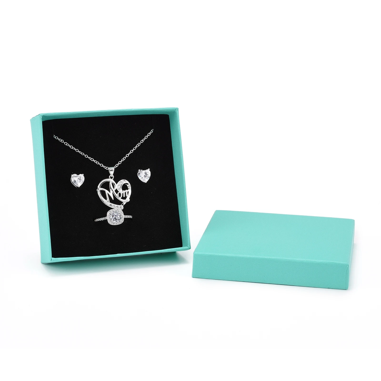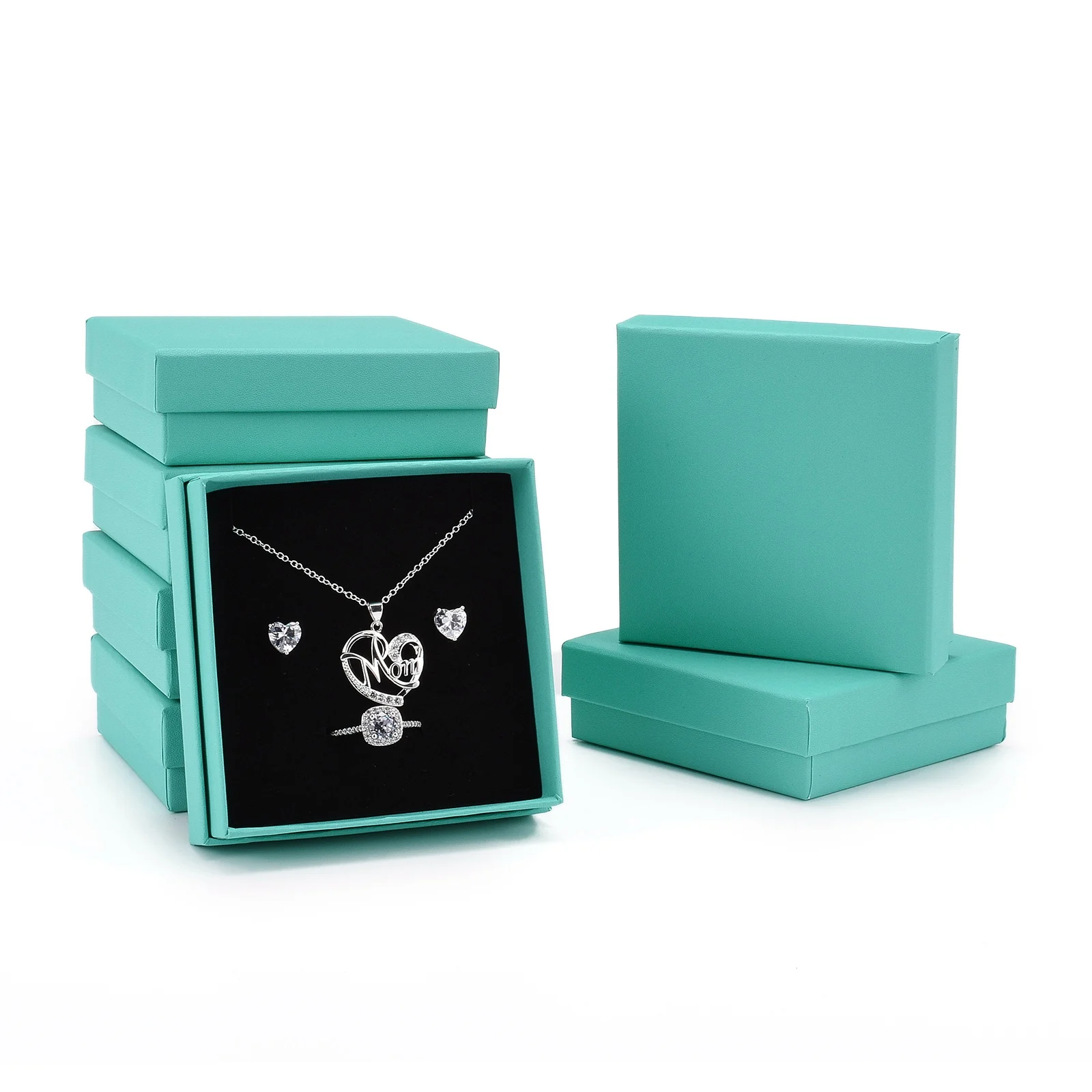 Картонная подарочная коробка комплект ювелирных изделий коробки, ожерелье, серьги, с черным губка внутри, квадратный, Средний бирюзовый <P> Размеры: с крышкой коробки: около 9,2 см в ширину, 9,1 см в длину, 2,9 см высоком каблуке; Без крышки коробки: около 8,8 см в ширину, 8,8 см в длину, 2,65 см в высоту.