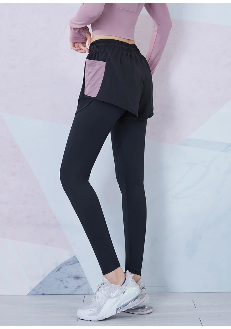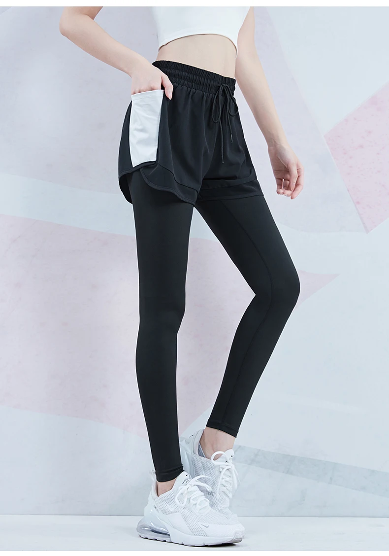 Женские колготки для фитнеса, бега, йоги, штаны с высокой талией, Бесшовные Спортивные Леггинсы, пуш-ап, леггинсы, спортивная одежда для девочек 2 в 1, леггинсы