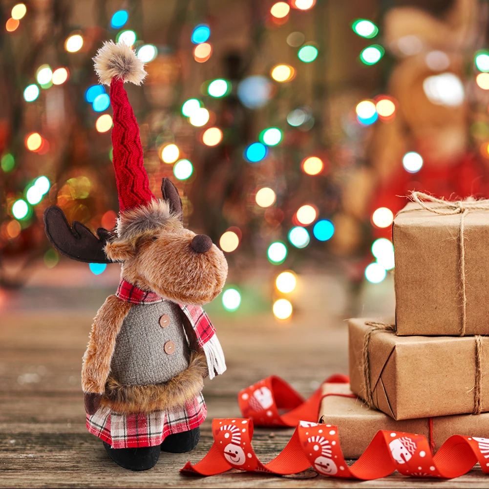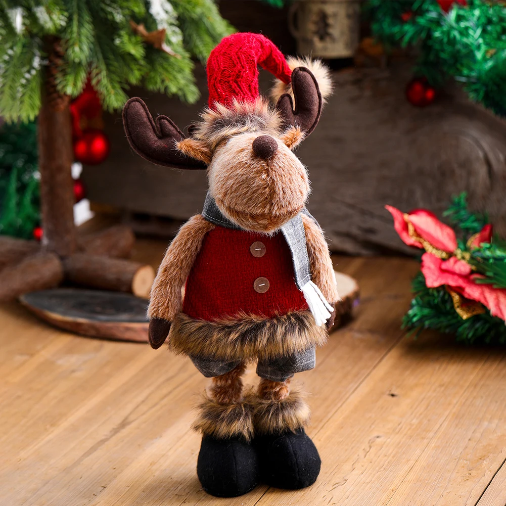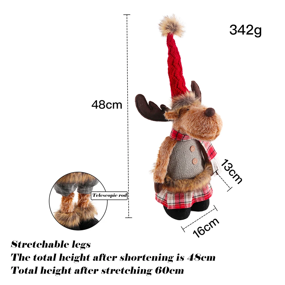 Retractable Cute Christmas Doll Elk with Knitted Hat Red Plaid Clothes Home Xmas Decoration Gift Kids Favors New Year Celebrate Table Setting Supply