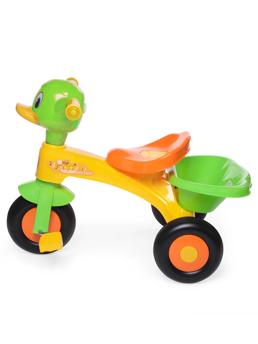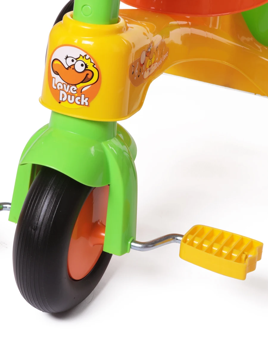 Малыши могут передвигаться, отталкиваясь ножками от пола: педали у рулевого колеса не будут им мешать. Конструкция с тремя большими колёсами обеспечивает устойчивость, а невысокое удобное сиденье позволяет малышам самостоятельно садиться и вставать.