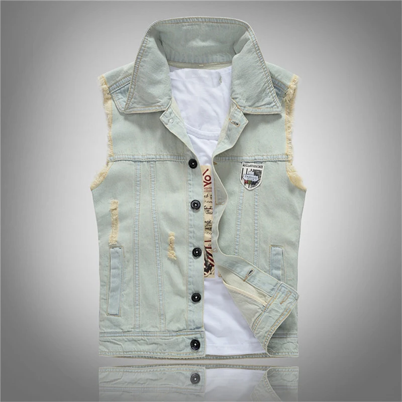 Отзывы о Мужская рваная джинсовая куртка без рукавов ковбойская жилетка в стиле хип-хоп