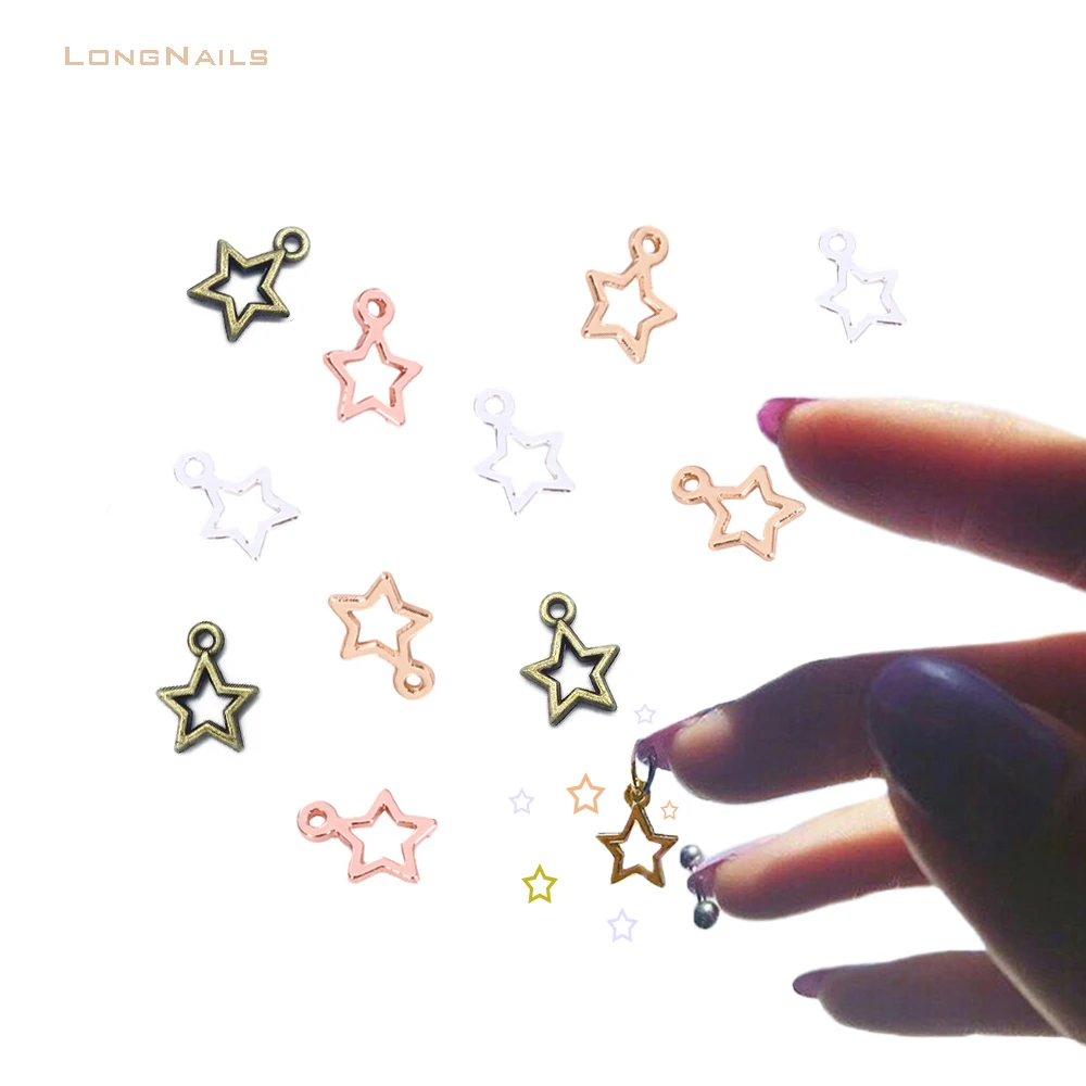 Отзывы о 2021 Полые Подвески для пирсинга ногтей сердце из сплава 5/10/100 шт. звезда обруч