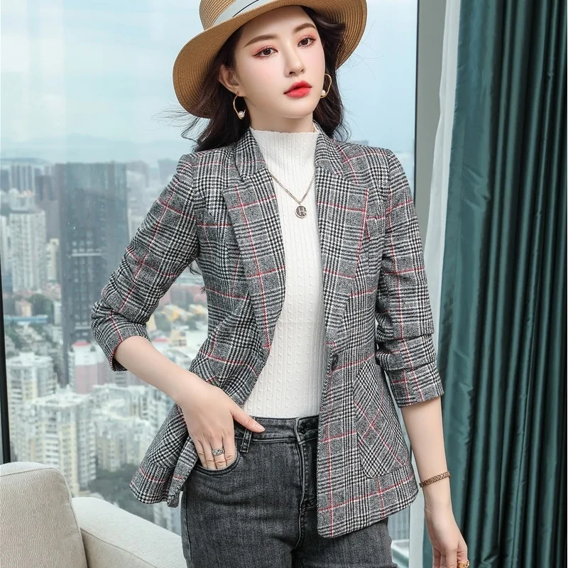 Отзывы о Женская куртка модное Персиковое пальто в клетку офисные блейзеры для женщин
