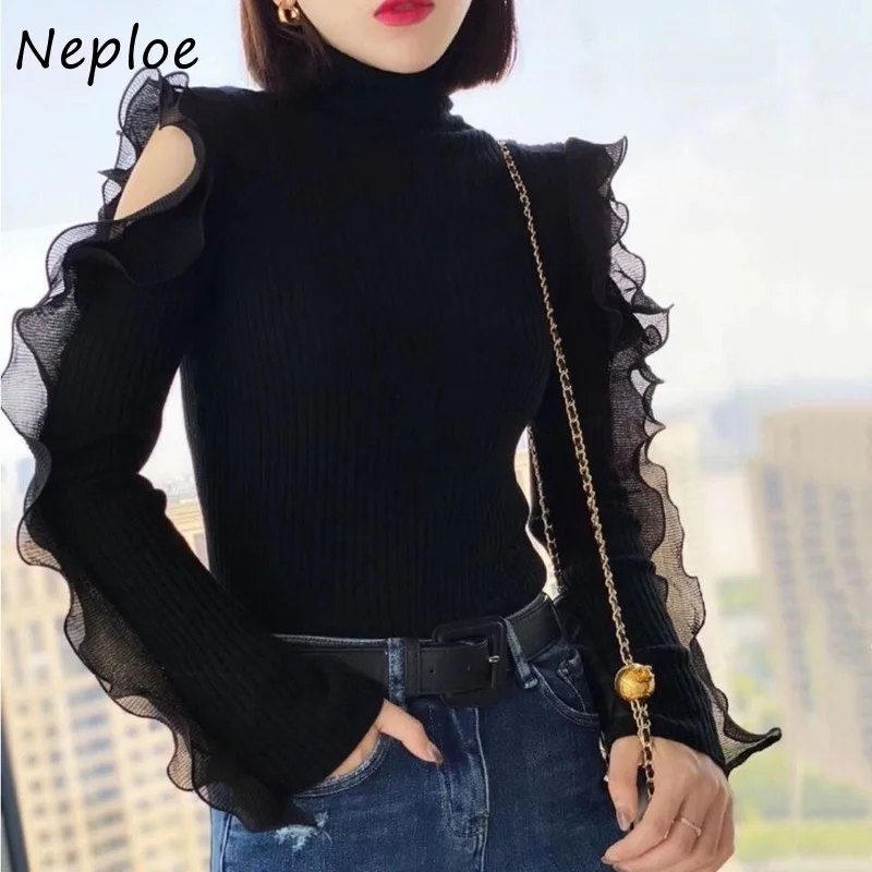 Отзывы о Вязаный пуловер Neploe Женский с воротником-хомутом открытыми плечами - купить по