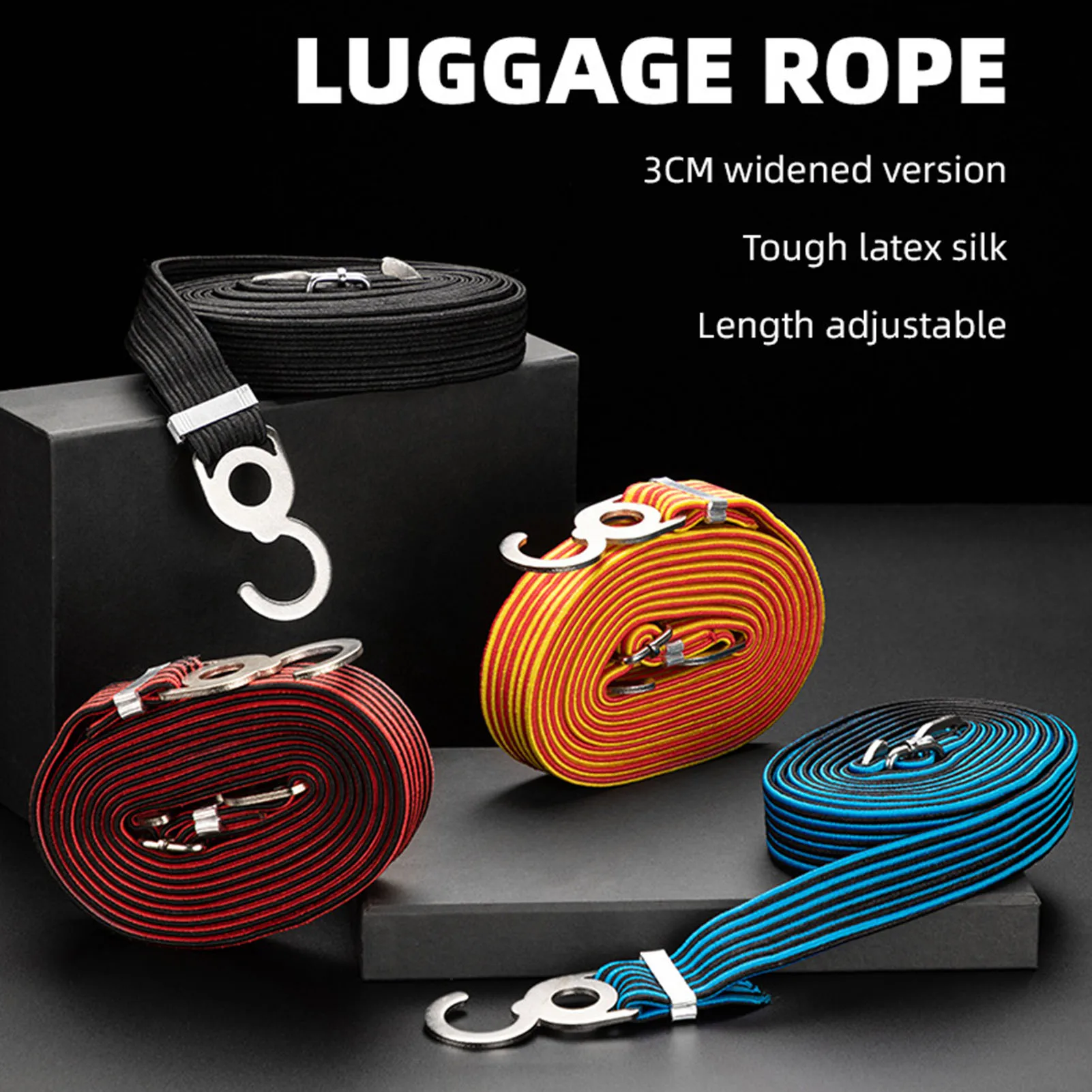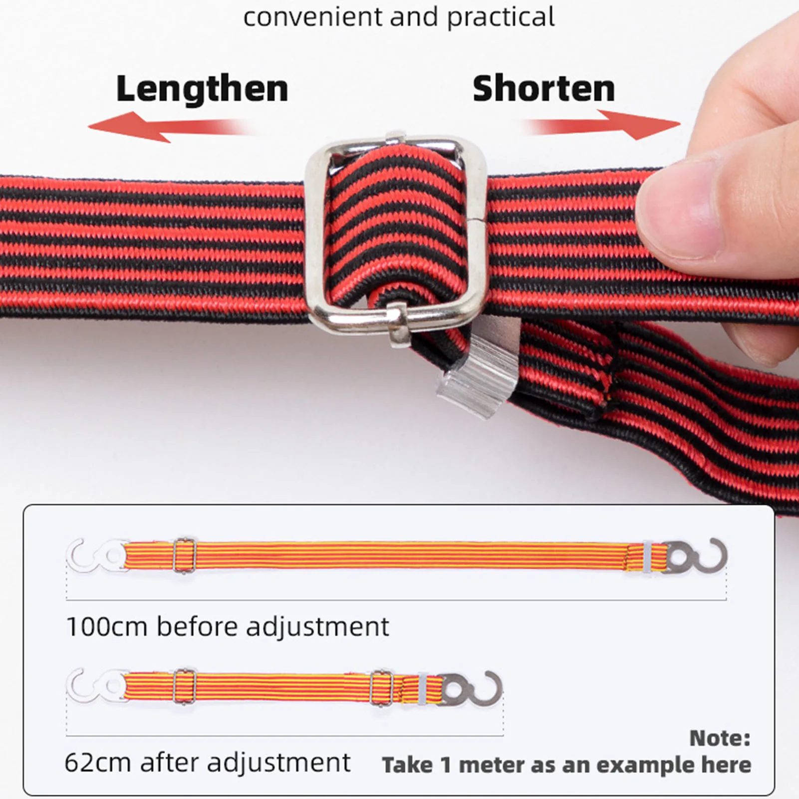 Точки пули:1. Регулируемая длина крючка: каждый плоский ремень имеет регулируемую длину крючка, который можно отрегулировать до необходимой длины. Высокая эластичная латексная пряжа может быть растянута до 2,5 раз больше, чем длина.