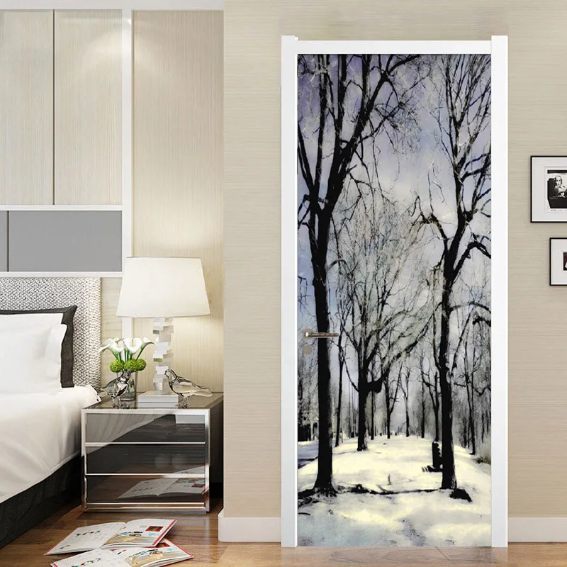 Отзывы о Наклейка на дверь из ПВХ с черно-белым лесом 77*200 см | Дом и сад