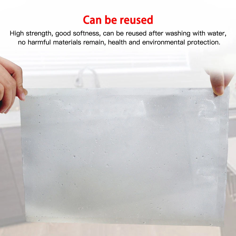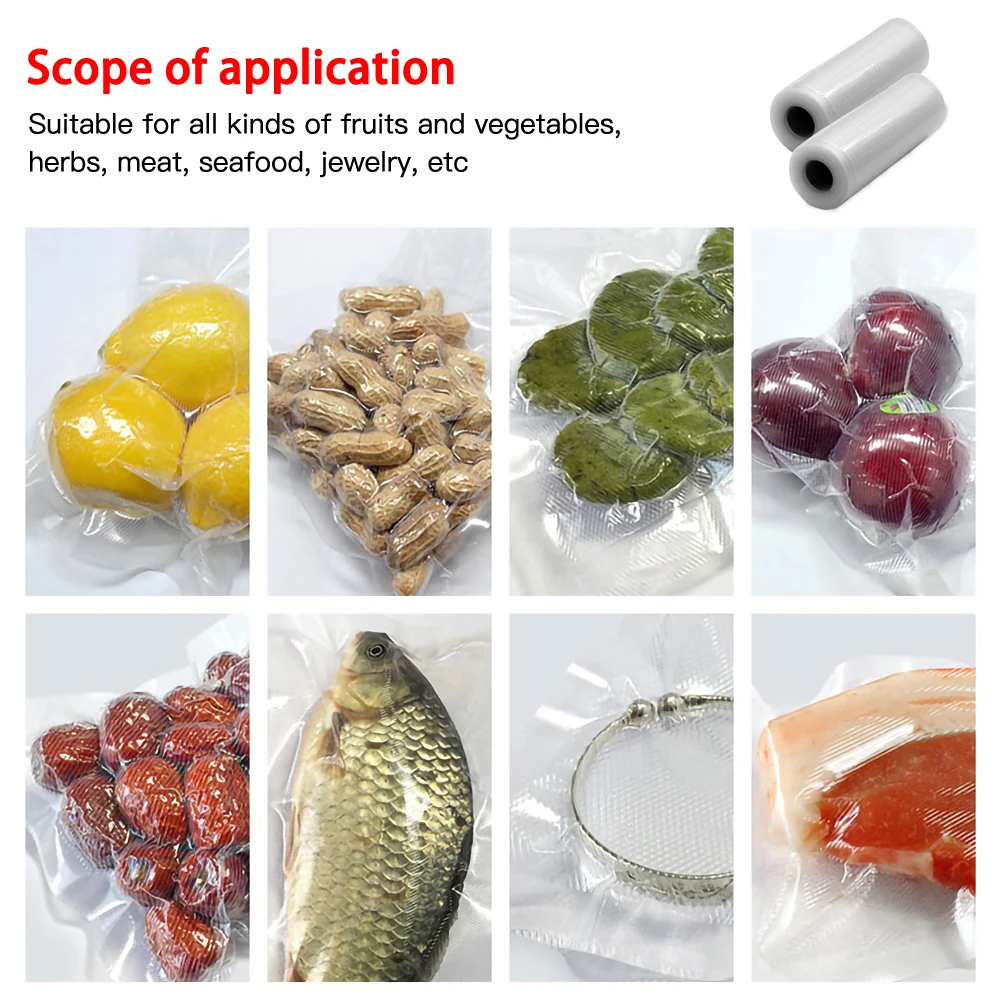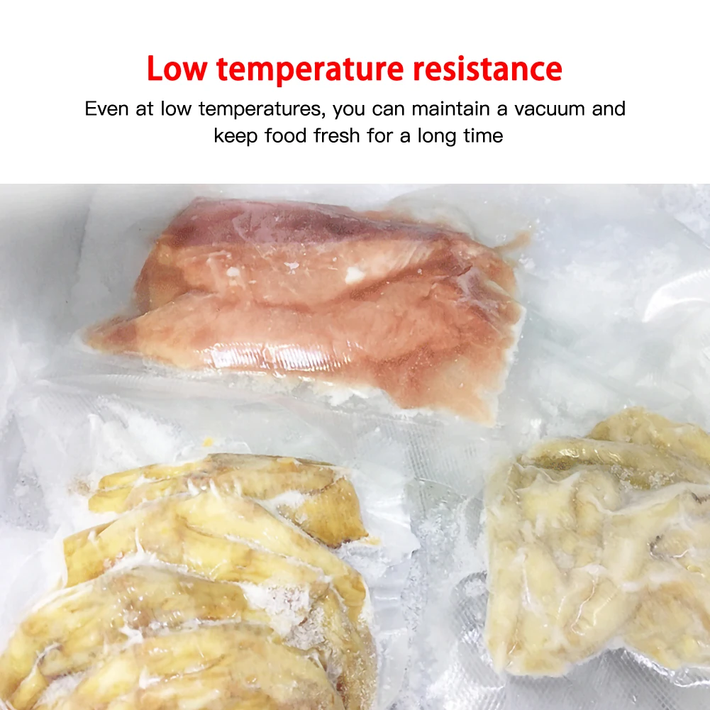 «Материал»: новый чистый нейлон PE материал, семислойный высококачественный мешок для упаковки пищевых продуктов, подходит для всех пищевых вакуумных упаковок, которые также могут быть использованы для упаковки других продуктов. Сетчатый рулонный мешок мягче, он немного прочнее, чем нейлон, и чувствует себя более комфортно, но он мягче, чем полиэфирный композитный и обычный Вакуумный пакет PA/PE. Между этими тремя видами новый чистый нейлон PE не легко растягивается независимо от толщины материала. Просто потяните за рот сумки (это лучший способ отличить материалы). Вакуумный мешок из этого материала имеет стабильное качество эвакуации, небольшой уровень утечки воздуха и длительный срок годности. Вакуумный пакет из этого материала подходит для всех пищевых продуктов.