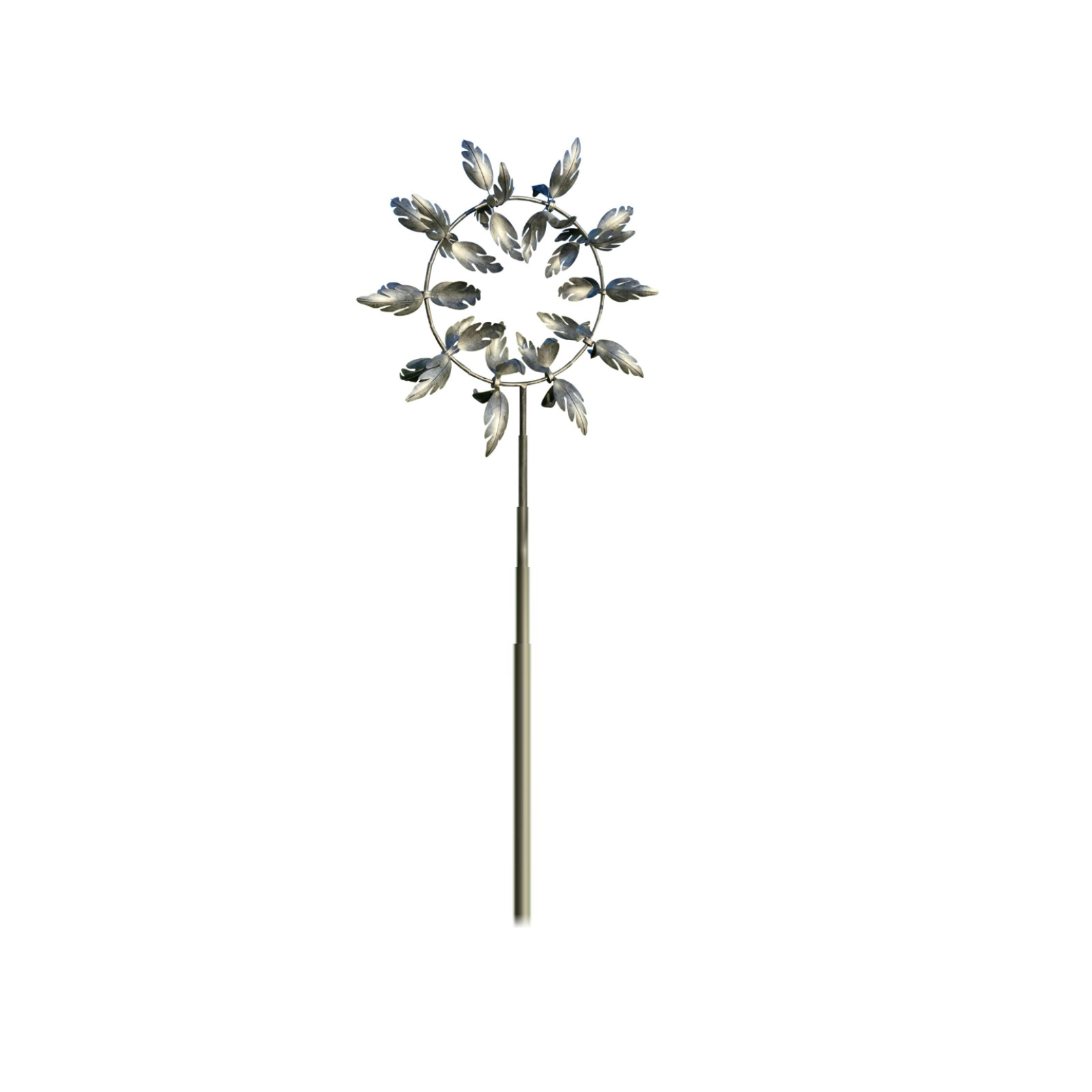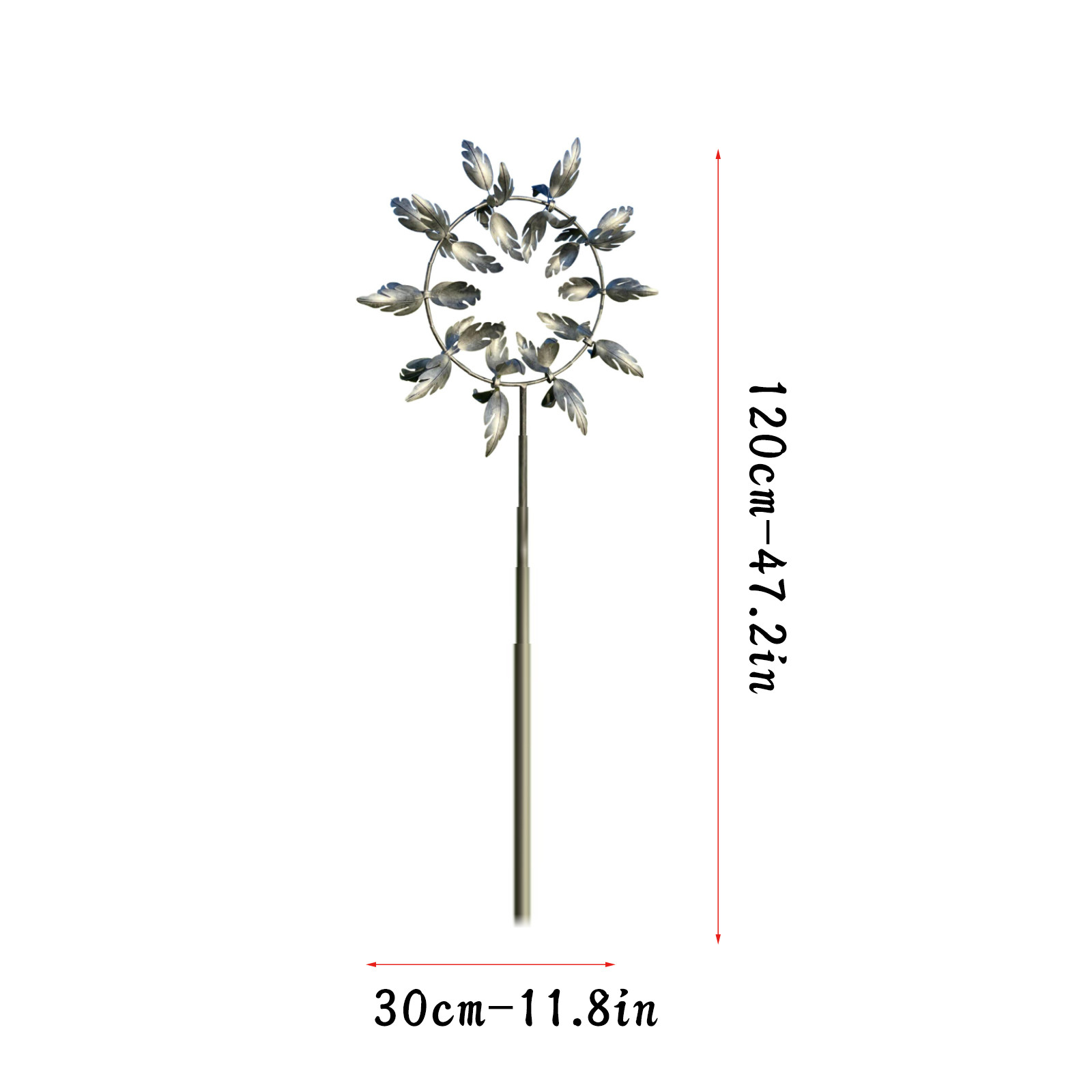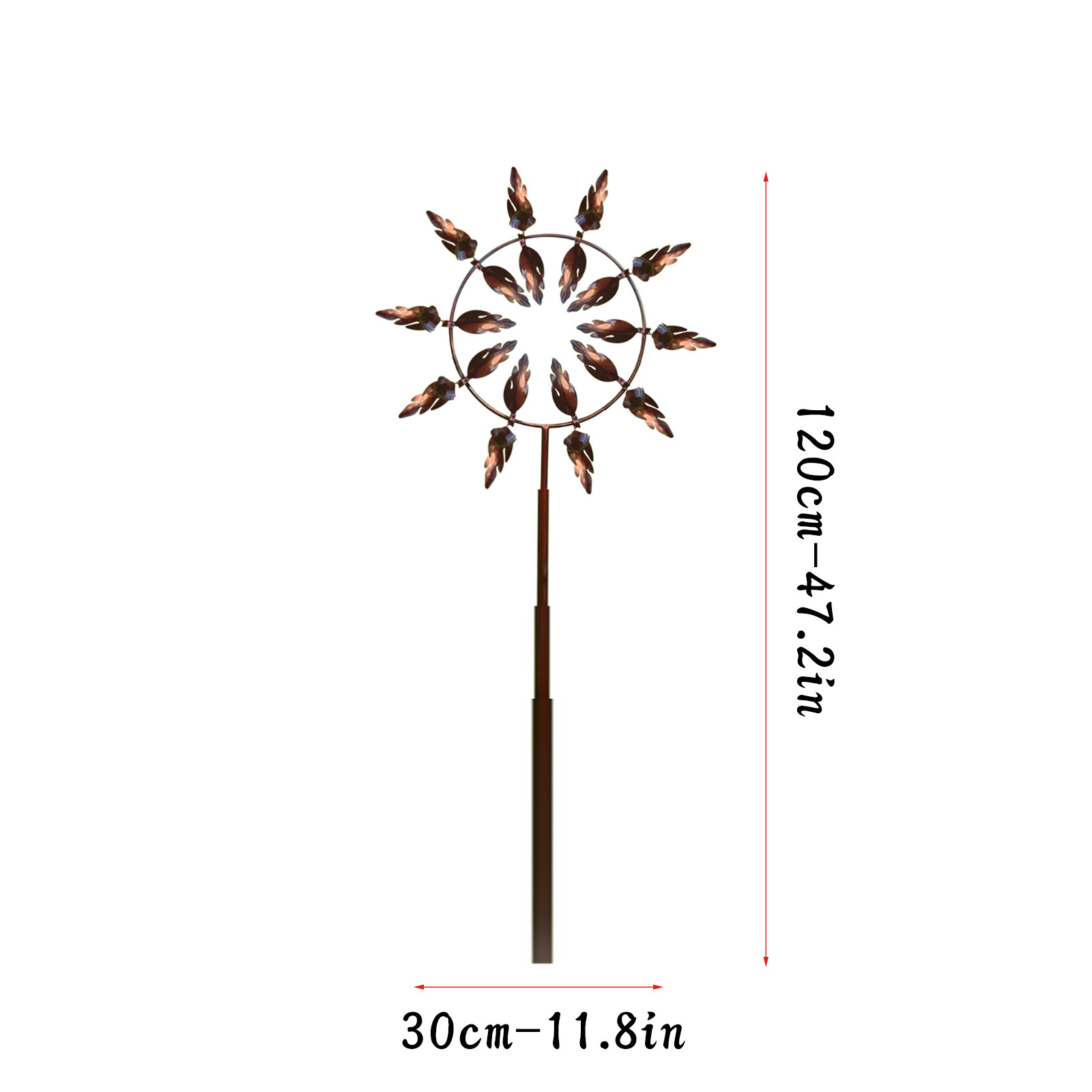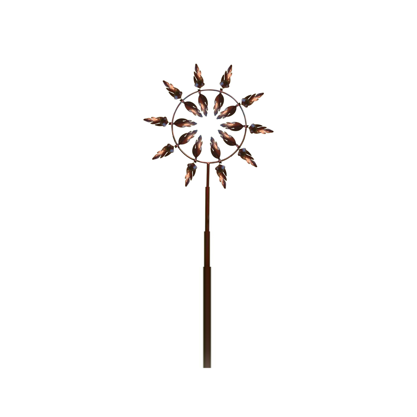 Stable, sturdy, modern and antique-many outdoor wind spinners have a unidirectional rotating blade. Our solar wind spinner has a solid metal structure with dual wind movement. Two layers of blades rotate smoothly in opposite directions on sealed bearings. Our durable yard wind spinner has modern features and contemporary charm, with a stable pile at the bottom to ensure firm planting on windy days.