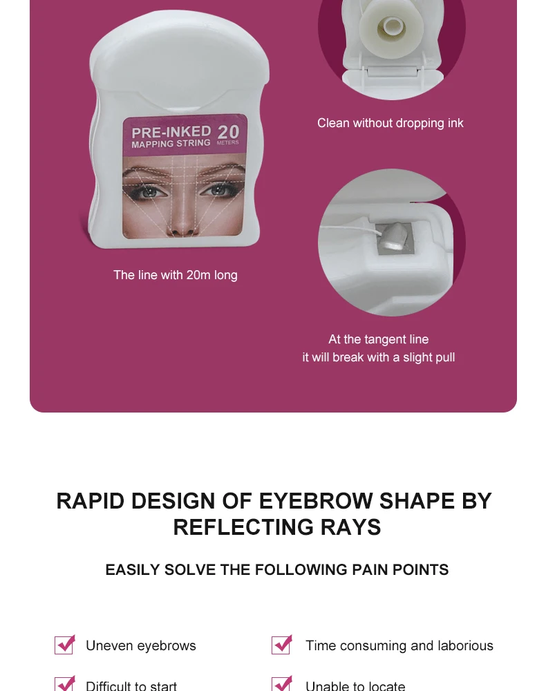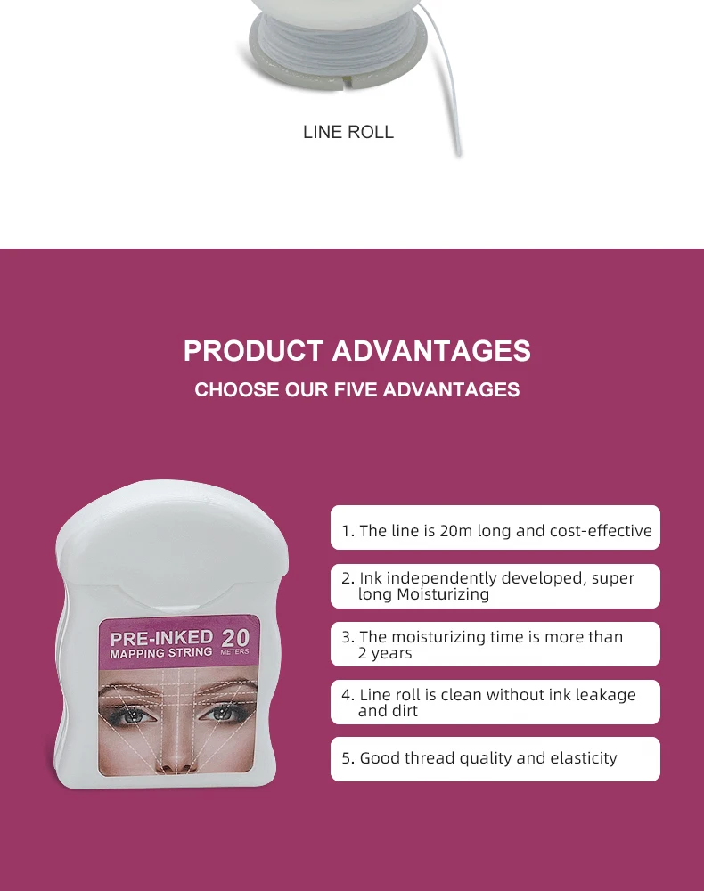 Простота в использовании и долговечность. Процесс рисования более быстрый и точный. Основные линии рисования для всех дизайнеров бровей и начинающих. Сократить время работы, улучшить эффект обработки, практичные аксессуары. Используется для маркировки перед программой microblade, инструмент microblade. Общая длина составляет 200 см, что может удовлетворить потребности различных микро-лезвий.