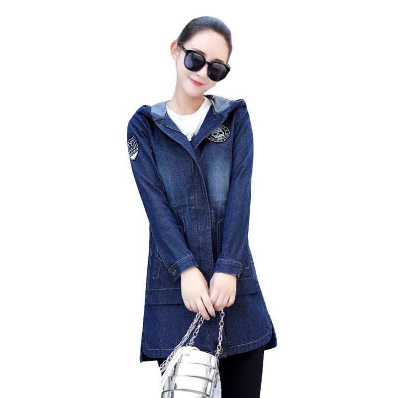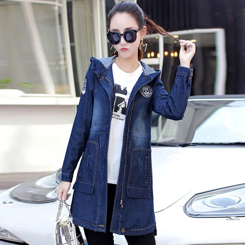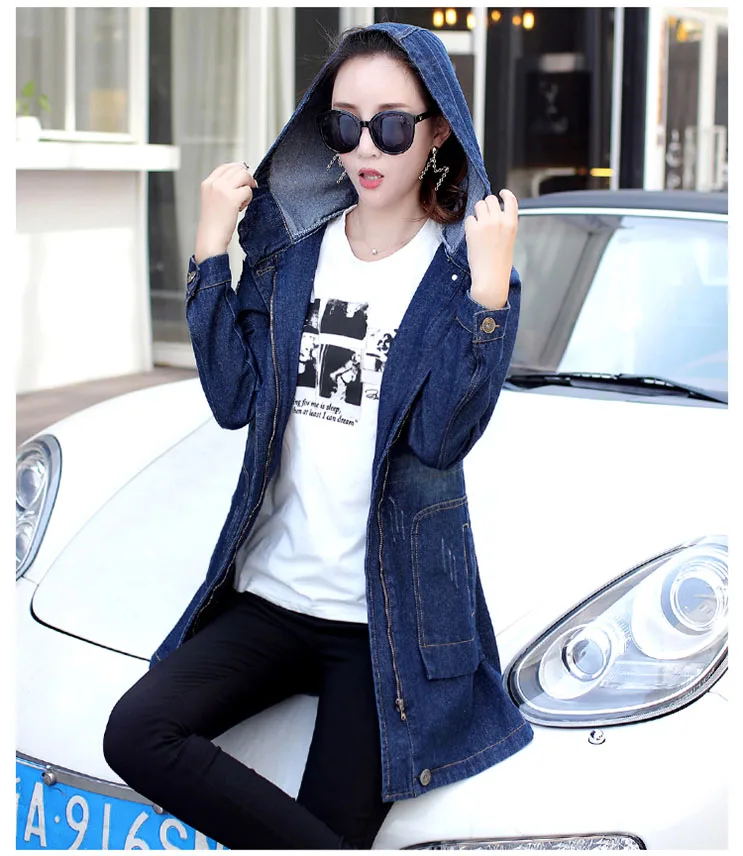 Отзывы о Женская джинсовая куртка средней длины с капюшоном и застежкой-молнией - купить