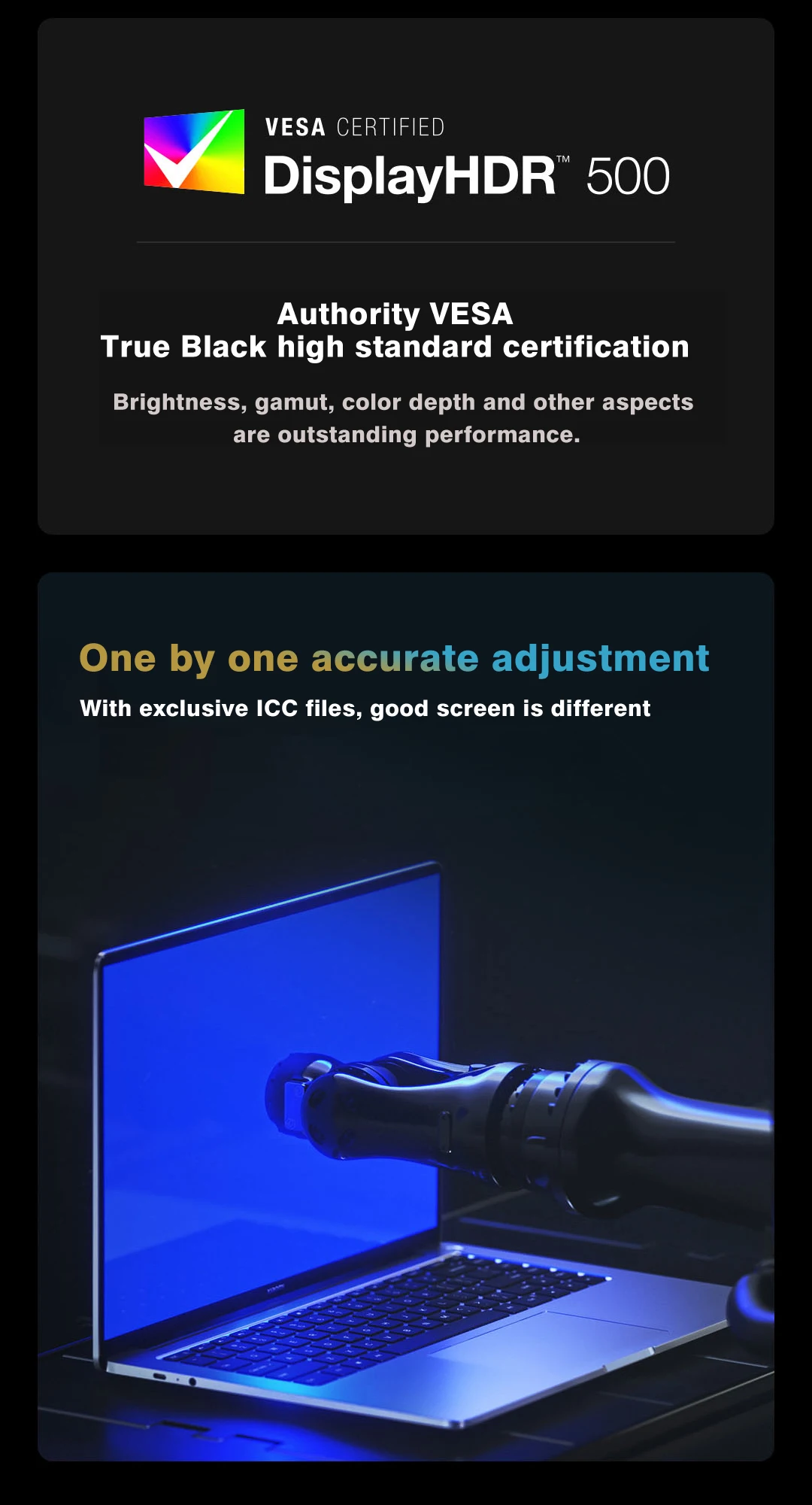 3,6 мм узкой рамкой *, 93% экран занимает * Дельта E ≈ 1 (типичное значение)