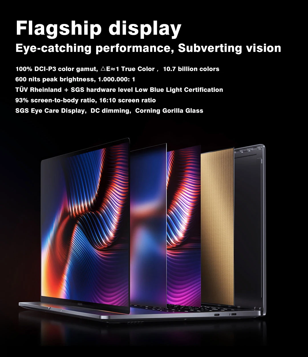 16:10 показывает пропорции, защитное стекло Corning, широкий обзор 170 °, 261ppi