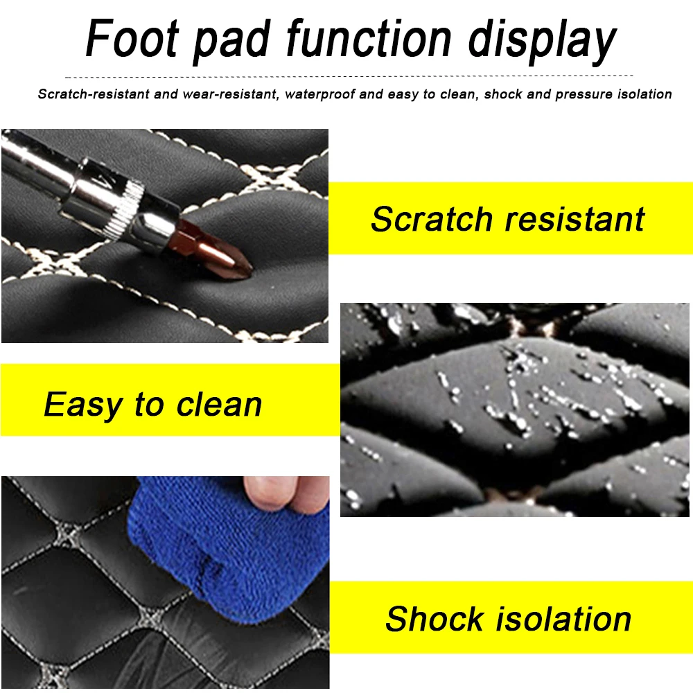1. Материалы и ткани, строго подобранные по многослойной композитной технологии, универсальны во все сезоны2. Наш продукт из высококачественной толстой кожи. Эта ножная накладка не только износостойкая и прочная, но и водонепроницаемая.3. Этот продукт изготовлен из экологически чистых материалов, здоровых и без запаха.4. Сотовые Нескользящие нижний слой, может быть предотвращен от скольжения ног колодки, безопаснее5. Если вы не можете найти свой специальный автомобильный коврик, наш продукт-ваш лучший выбор.6. Послепродажное обслуживание: Мы имеем профессиональную команду послепродажного обслуживания. Если у вас есть какие-либо вопросы, пожалуйста, свяжитесь с нами как можно скорее, мы ответим Вам в течение 24 часов.