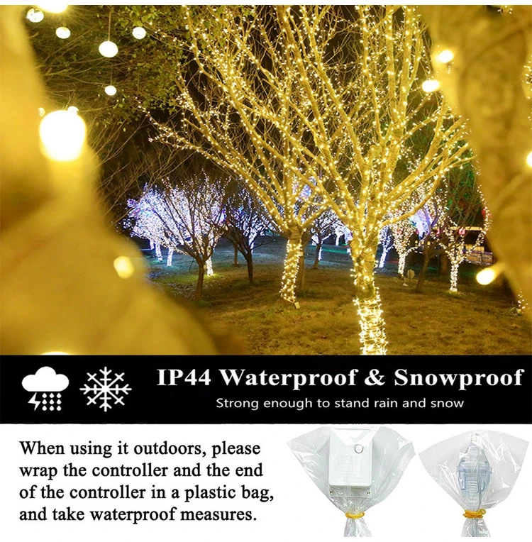 • [Водонепроницаемость IP44] Наши водонепроницаемые рождественские гирлянды прошли сертификацию IP44. Все мини-светодиодный лампы-это светодиодный светильник fil с клейкими Слоями Горячего Расплава, защита от замерзания и окисления обеспечит более длительный срок службы. Идеально подходит для использования на открытом воздухе без повреждений, включая сильный дождь и снег. Но обратите внимание, что адаптер nad должен быть защищен от воды