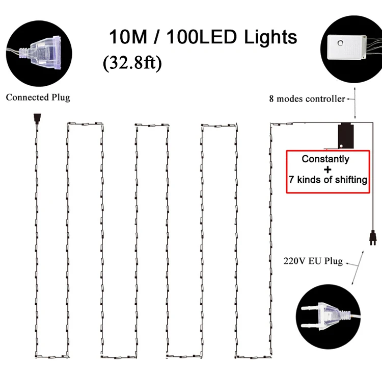 • [Широко используется] 32,8 feets длинный (10 метров) светильник рождественской елки с 100 светодиодными лампами идеально подходит для использования в помещении и на открытом воздухе. Прозрачная проволока может скрывать внутри гирлянды, рождественскую елку и многое другое. Он также может сочетаться с любым фоном, очень подходит для комнаты, стены, сада, крыльца или добавления сверкающего свечения в ваш патио или балкон, что делает каждый уголок новым.