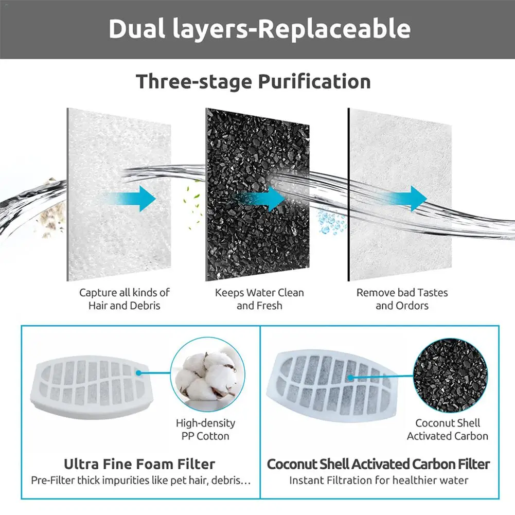 1. Фильтр-хлопок для дозатора воды для домашних животных: активированный уголь в фильтре может удалить плохой запах и специфический запах и сохранить воду чистой и свежей.