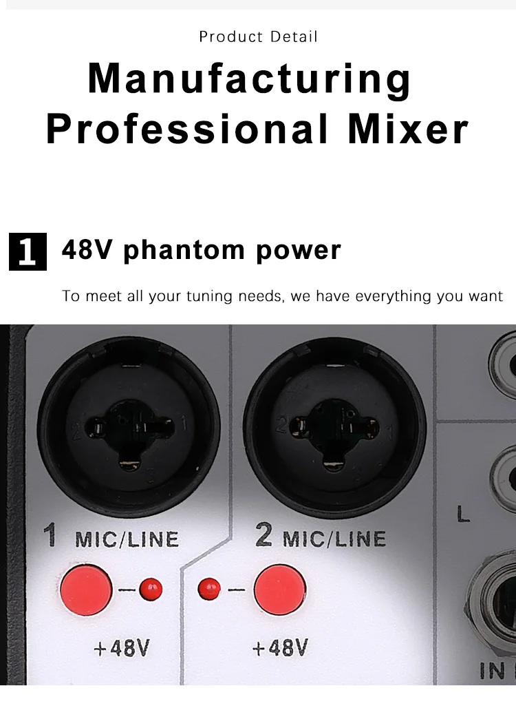 【Professional 4-канальный аудио Mixer】BOMGE BMG-04D является профессиональным 4-канальный микшерный пульт, в том числе двое подойдет как для повседневной носки, так входных каналов, один стерео входного канала и USB входной канал, с 6,3 мм, XLR Сделано в Китае, RCA розетки для подключения различных устройств, таких как конденсаторный микрофон, динамический микрофон, беспроводной микрофон, гитара, пассивный динамик и т. Д. Подходит для студии записи, Системы общественных адресов, баров, вещания, прямой трансляции, телевидения и пост-продакшн фильмов и т. Д.