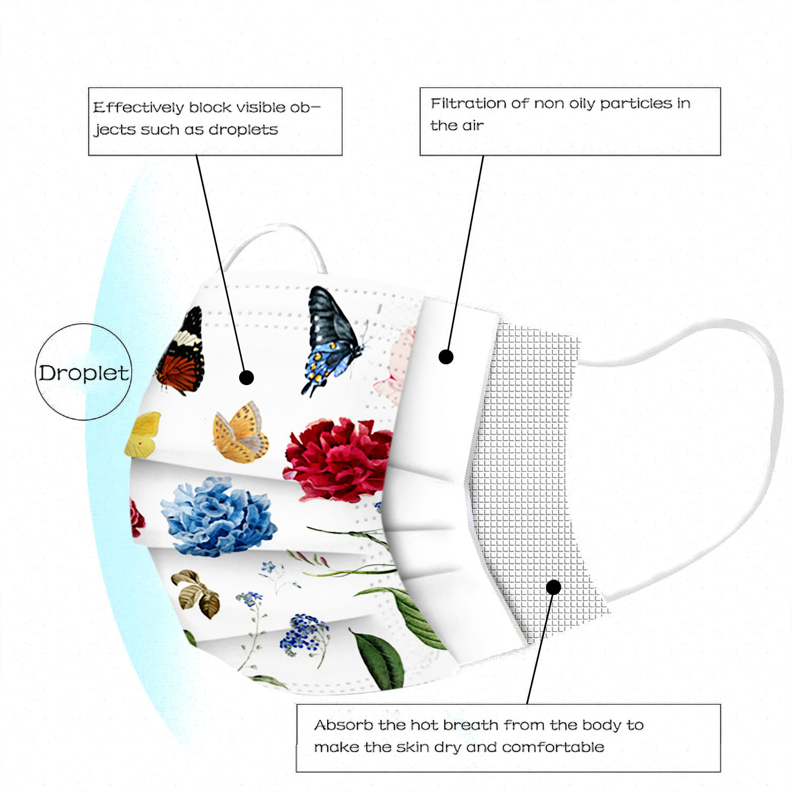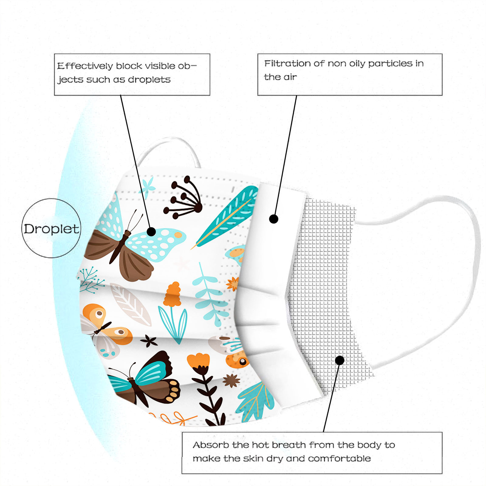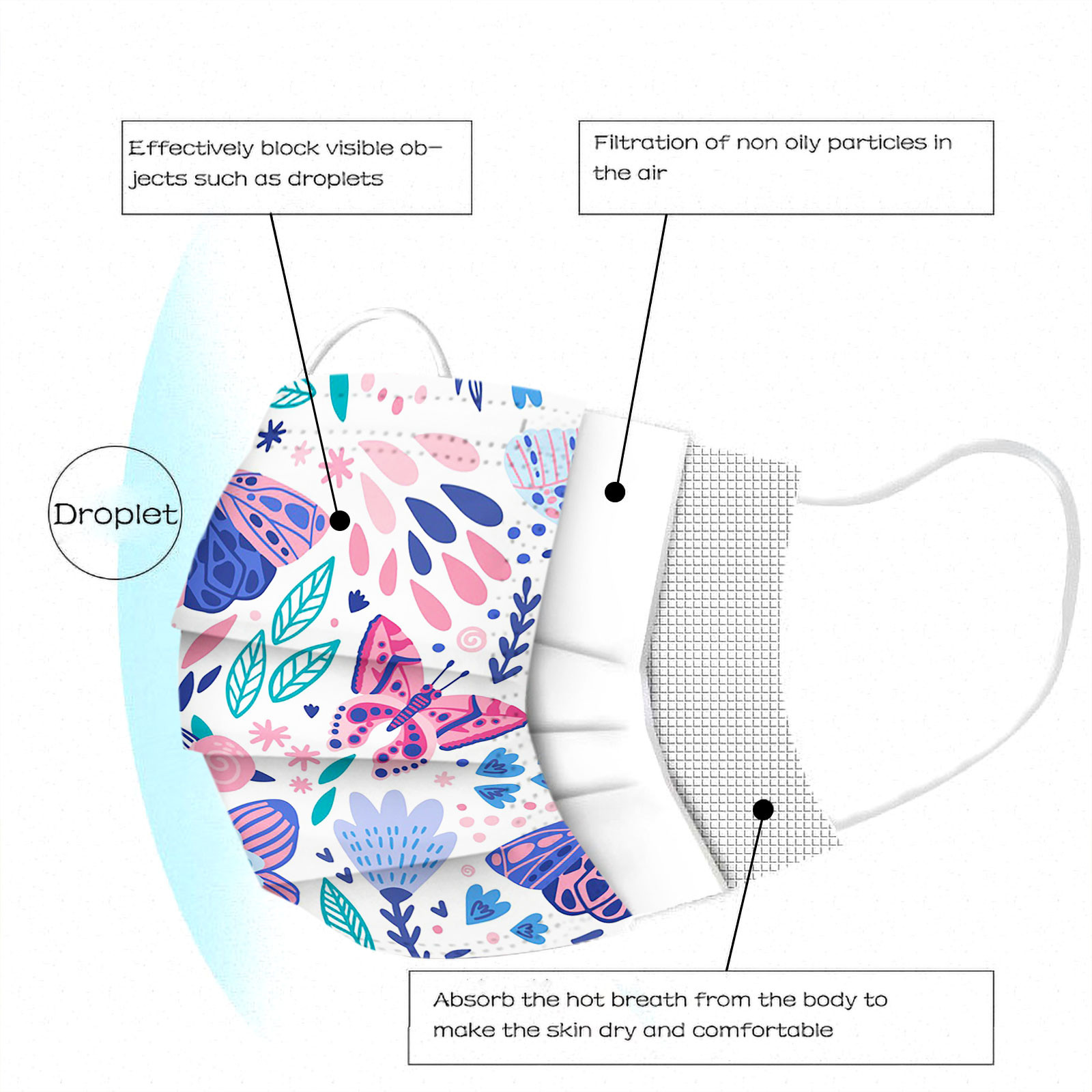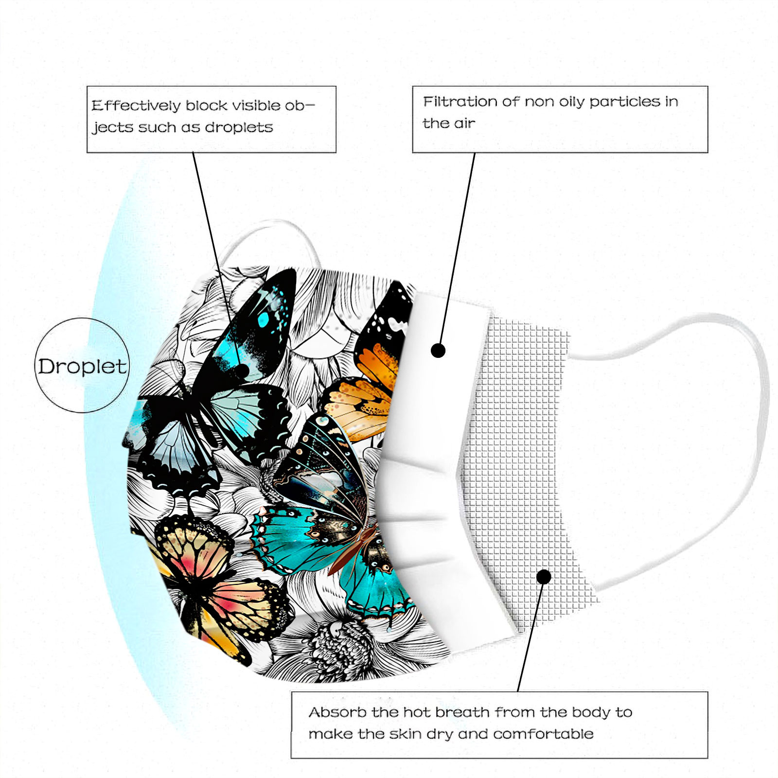 Отзывы о 50pc Butterfly Print Disposable Masque Mascarilla Mask for face Mascarillas Desechables Маска Для Лица Halloween Cosplay |