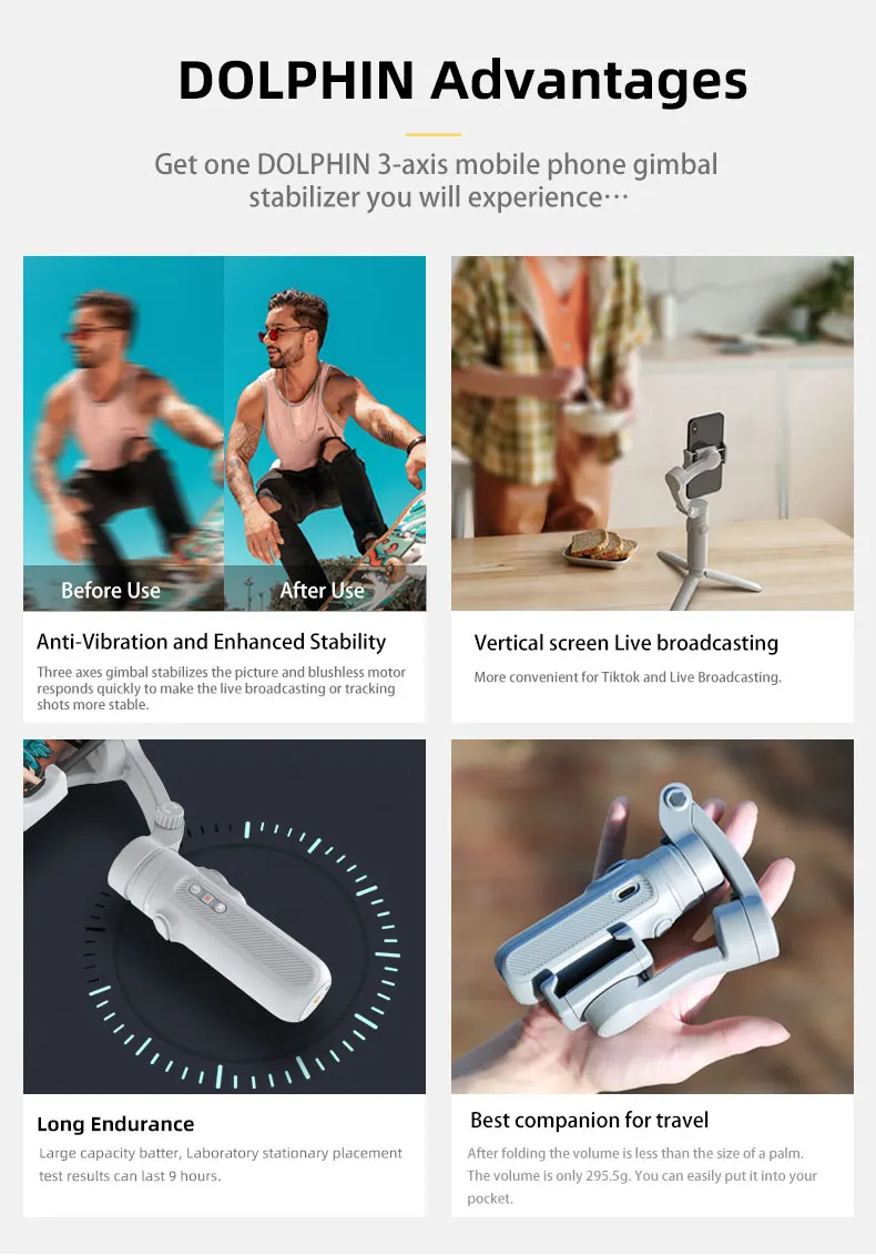 Отзывы о Подвесной стабилизатор INKEE DOLPHIN 3 оси Bluetooth со штативом для съемки мобильный