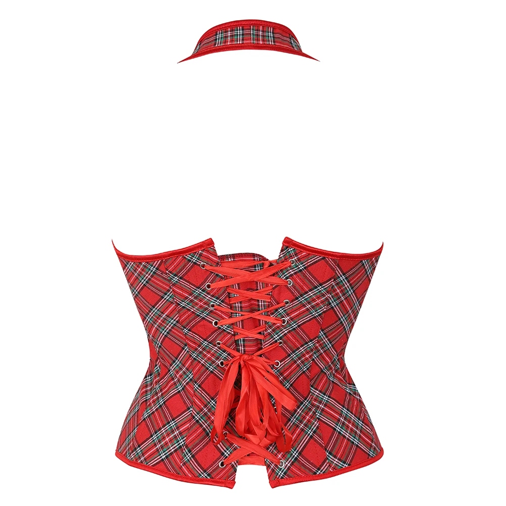 Корсеты для женщин красный плед Overbust корсет на ремнях Талия Cincher верхняя одежда Холтер корсет Топ экзотического размера плюс