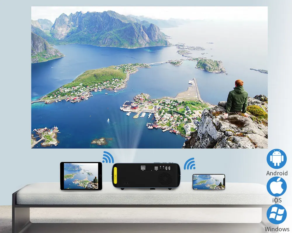 Проектор поддерживает беспроводную airplay, просто делая проектор и телефон подключаться к тому же wifi. Проектор может проецировать то, что раскладывает телефон. Вы можете смотреть фильмы с большим экраном. Это хороший визуальный опыт для вас.