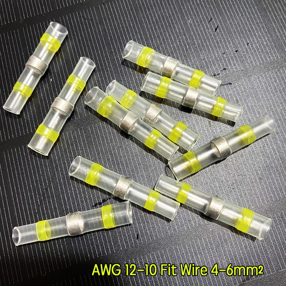 Термоусадочный отвод припоя без пятки среднего размера для наращивания волос 10/30/50/100 шт SST-S41 IP67 Водонепроницаемый AWG 12-10 подходит провод 4-6mm м² желтый разъем