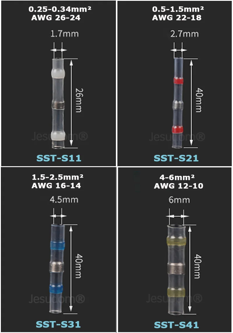 Отзывы о Термоусадочные соединители средней трубы для пайки 10/30/50/100 шт. SST-S41 IP67