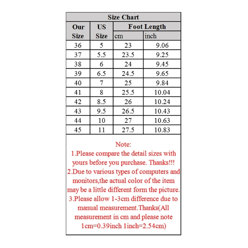 Размер: 36/37/38/39/40/41/42/43/44/45 (Китайский размер, следуйте таблице размеров, чтобы выбрать, пожалуйста)