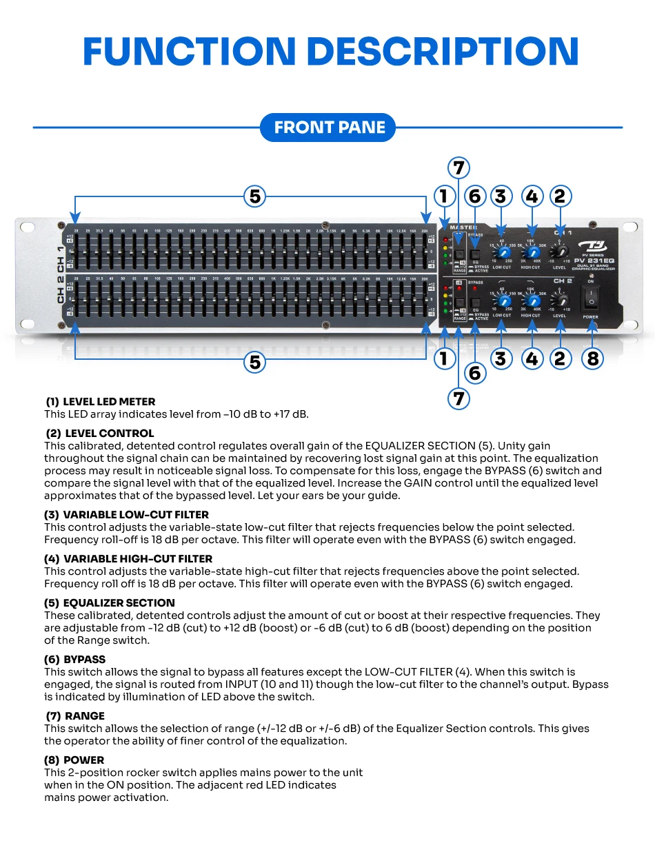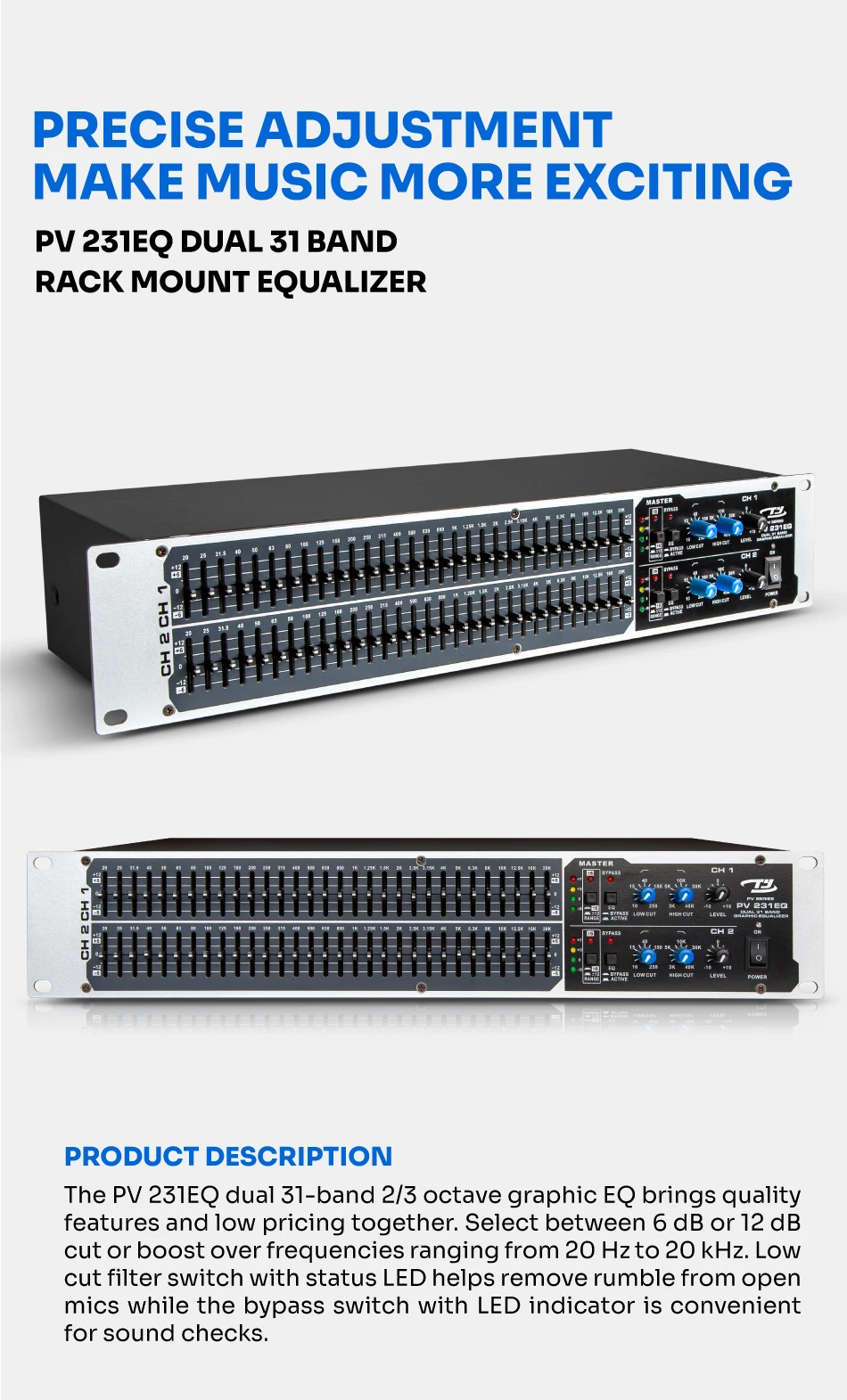 PV 231EQ dual 31-band 2/3 octave graphic EQ сочетает в себе функции качества и низкие цены.
