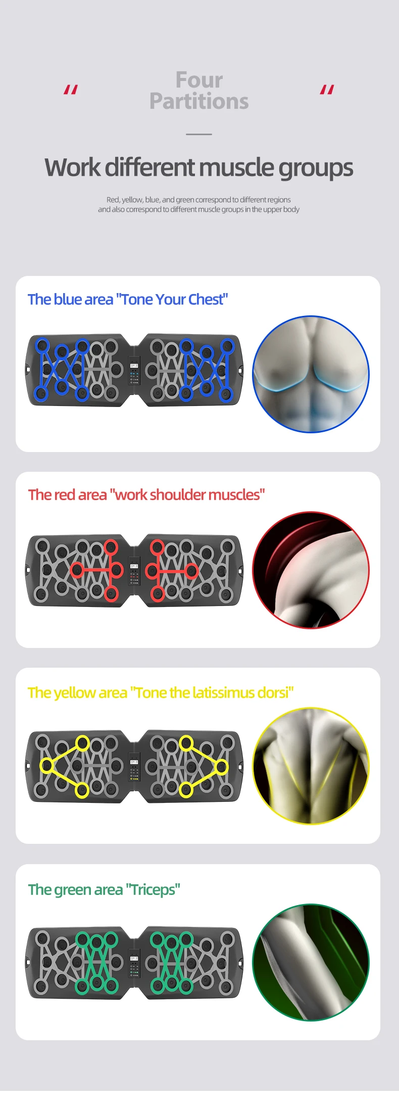 Описание:Пуш-ап-это инновационная система обучения с цветными кодами, которая укрепляет и Формирует весь верх (грудь, плечи, спину и руки), привлекая к себе общее ядро.