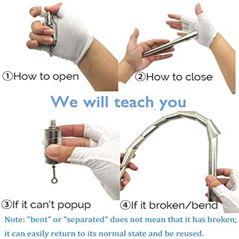 4.About retracting: Grab the thick end of the telescopic rod, rotate it and retract it a little bit, and put the low-end latch flat in the palm of your hand to retract it safely!