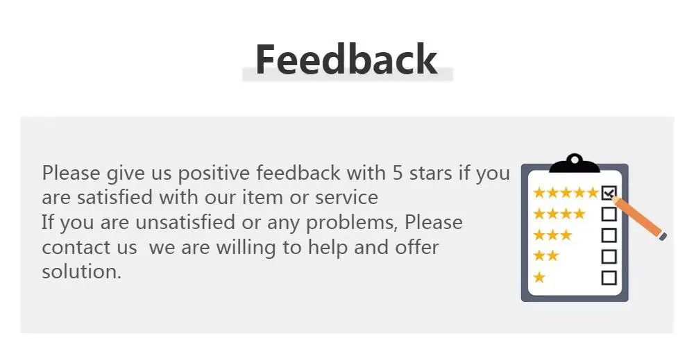 Если вы недовольны, пожалуйста, свяжитесь с нами вовремя, прежде чем оставлять отрицательный или нейтральный отзывы. Мы сделаем все возможное, чтобы решить вашу проблему и удовлетворить ваши потребности.