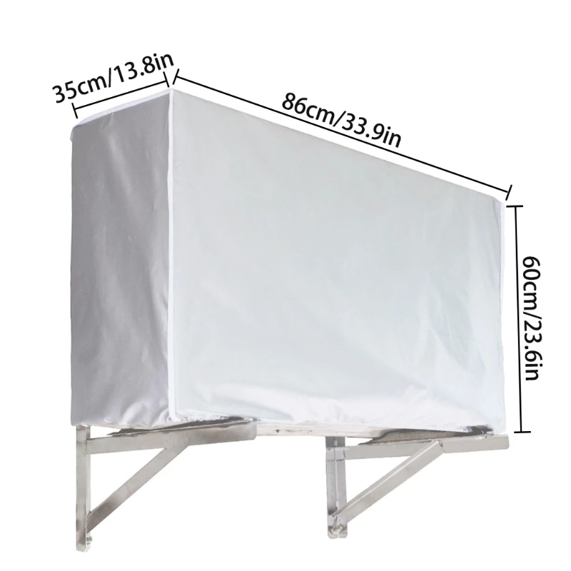 Изготовлен из полиэфирной ткани, ПВХ покрытие, водонепроницаемый, защищает и предотвращает дождь, снег, пыль, пыльца и т. Д. От попадания в кондиционер.