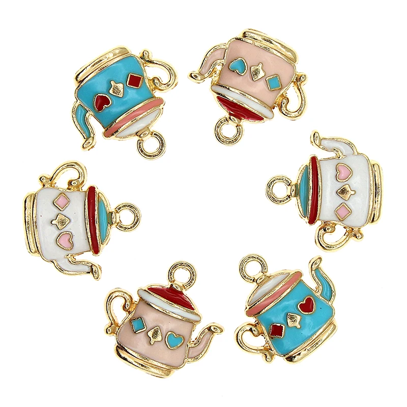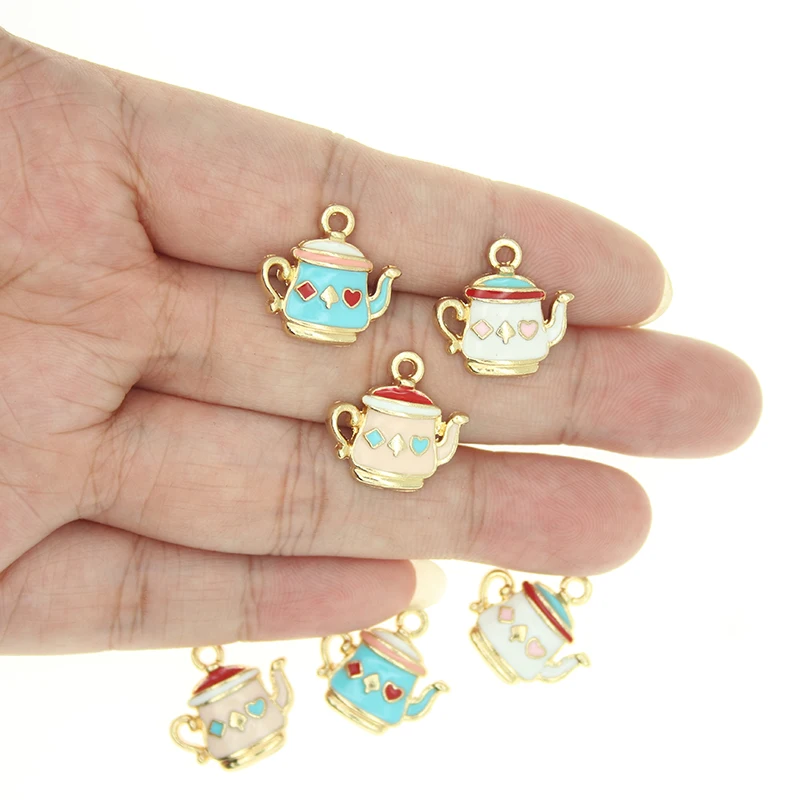 10 шт./партия, милый чайник, эмалированный чайник для покера, подвески для самостоятельного изготовления ювелирных изделий, аксессуары для одежды, кулоны, поплавки, брелок, изделия XL1247