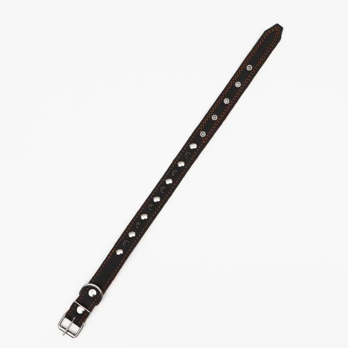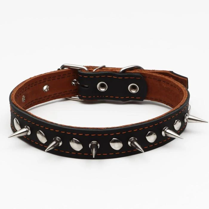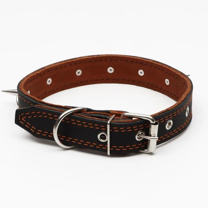 Ошейник кожаный двухслойный шипованный, 63 х 3 см, ОШ 40-55 см, чёрный 7060682