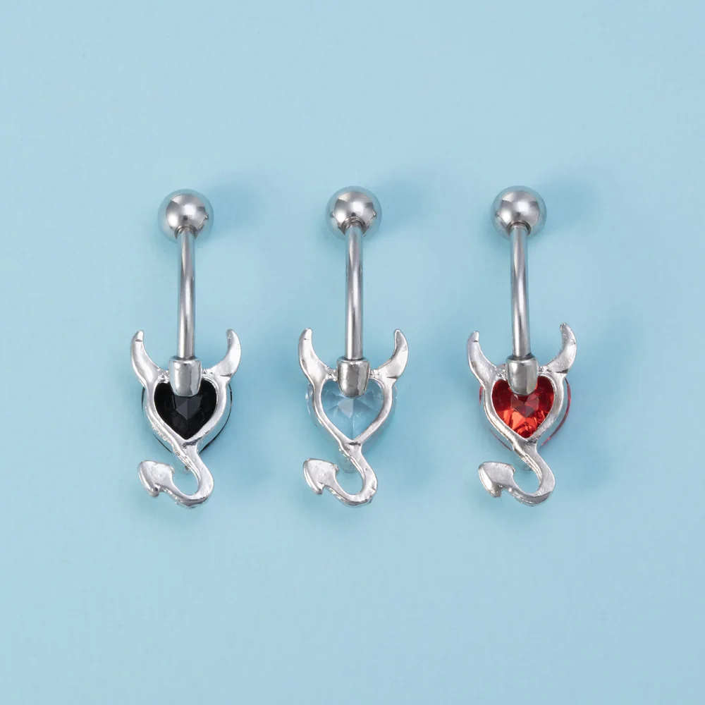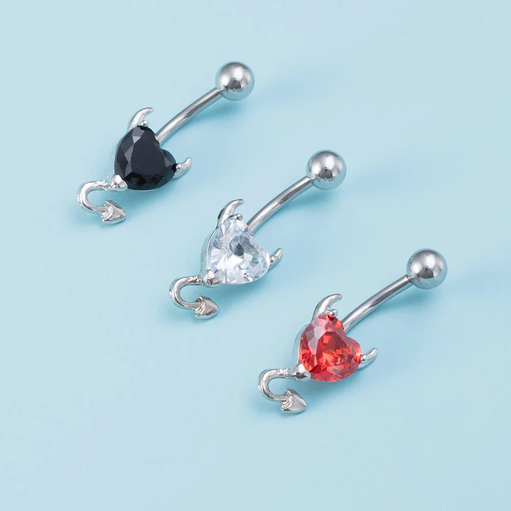 1 шт., кубический цирконий, дьявол, сердце, пупка, кольца для женщин, 14 г, хирургическая сталь, сексуальные пупковые колокольчики, шпильки, пирсинг, ювелирные изделия