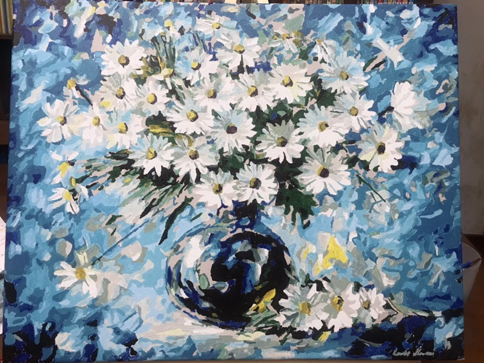 Просто нанесите пронумерованные цвета на заготовки с тем же номером на холсте, чтобы создать свой собственный шедевр.