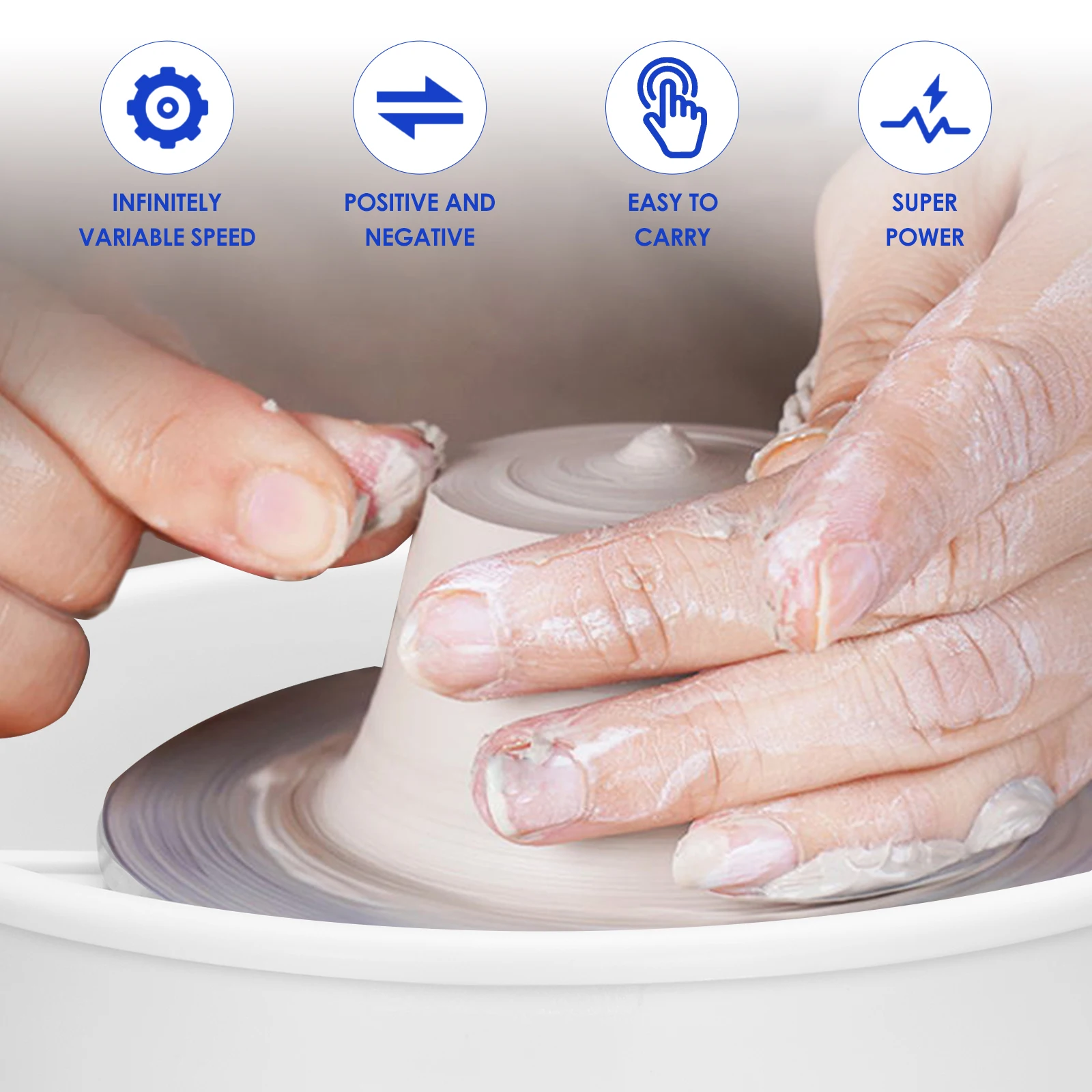 【Технология двойного двигателя 】-конструкция двойного двигателя электрической керамической машины обеспечивает мощные эффекты мощности для работы в керамике. Он может управлять до 1,8 кг глины.